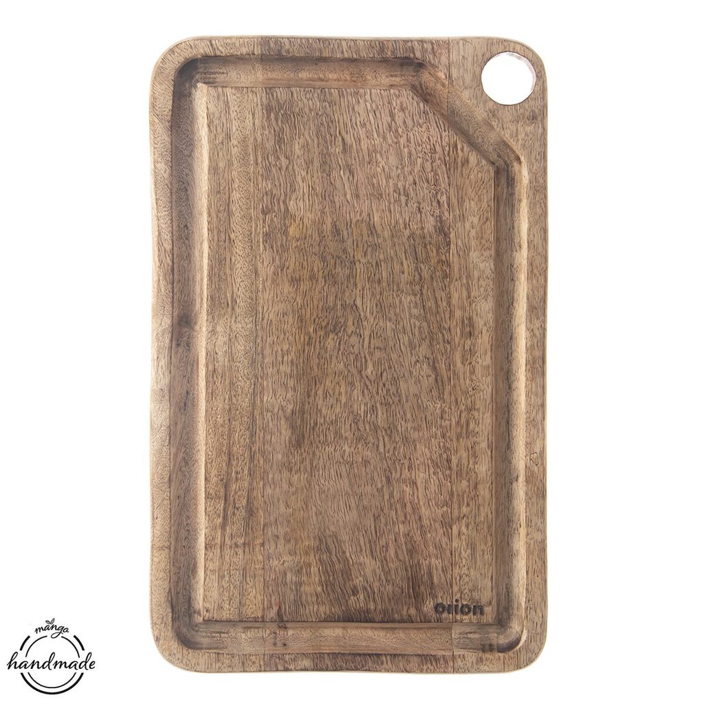 Díky tomuto kuchyňskému prkénku se vaše stolování stane nevšedním zážitkem. Skvěle na něm naservírujete maso z grilu se zeleninou i pečivem. Hluboká drážka po celém obvodu zabrání stékání šťávy z masa, ovoce i zeleniny při přípravě i servírování. Je možné je také zavěsit, vytvoří tak krásnou dekoraci v době, kdy jej nepotřebujete. Snadno se udržuje, stačí jej lehce otřít a je připraveno k dalšímu servírování. Materiál: dřevo mango. Rozměry: 40,5x24x2,2 cm.