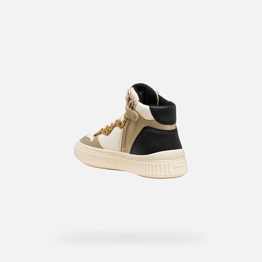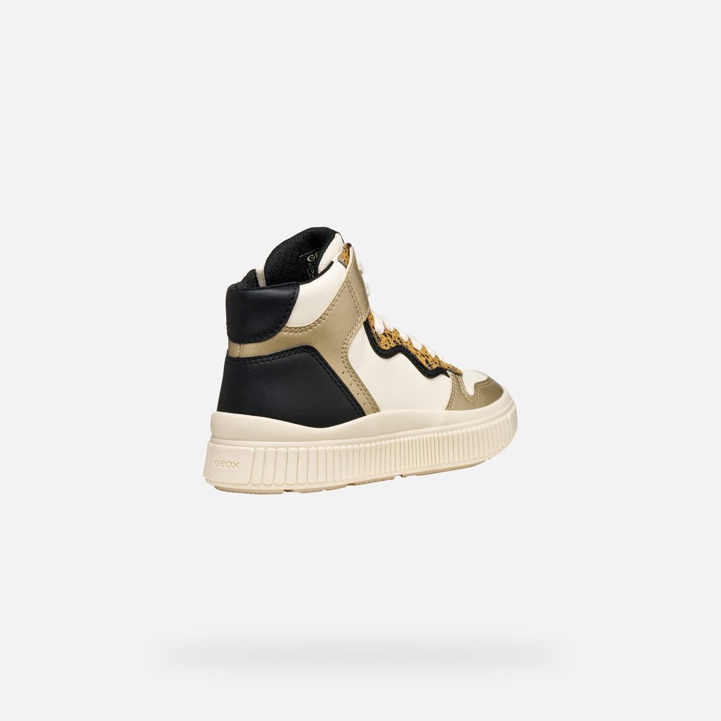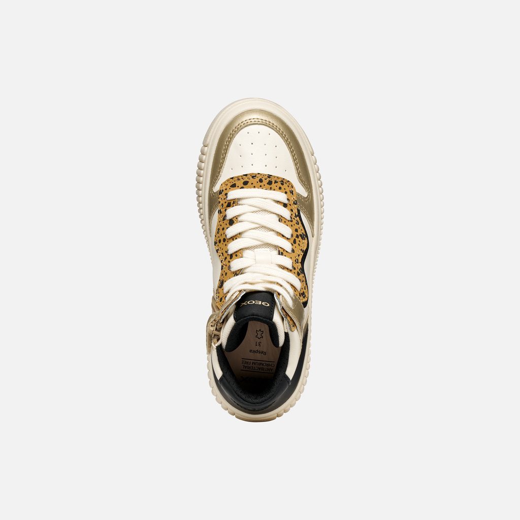 Krémové dívčí kotníkové tenisky Geox Laquinny s originálním leopardím vzorem a kontrastními detaily.