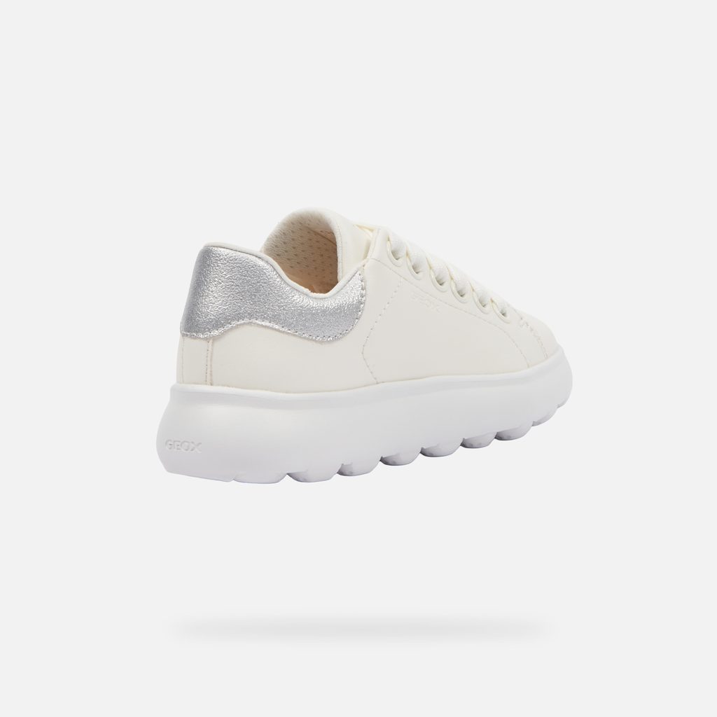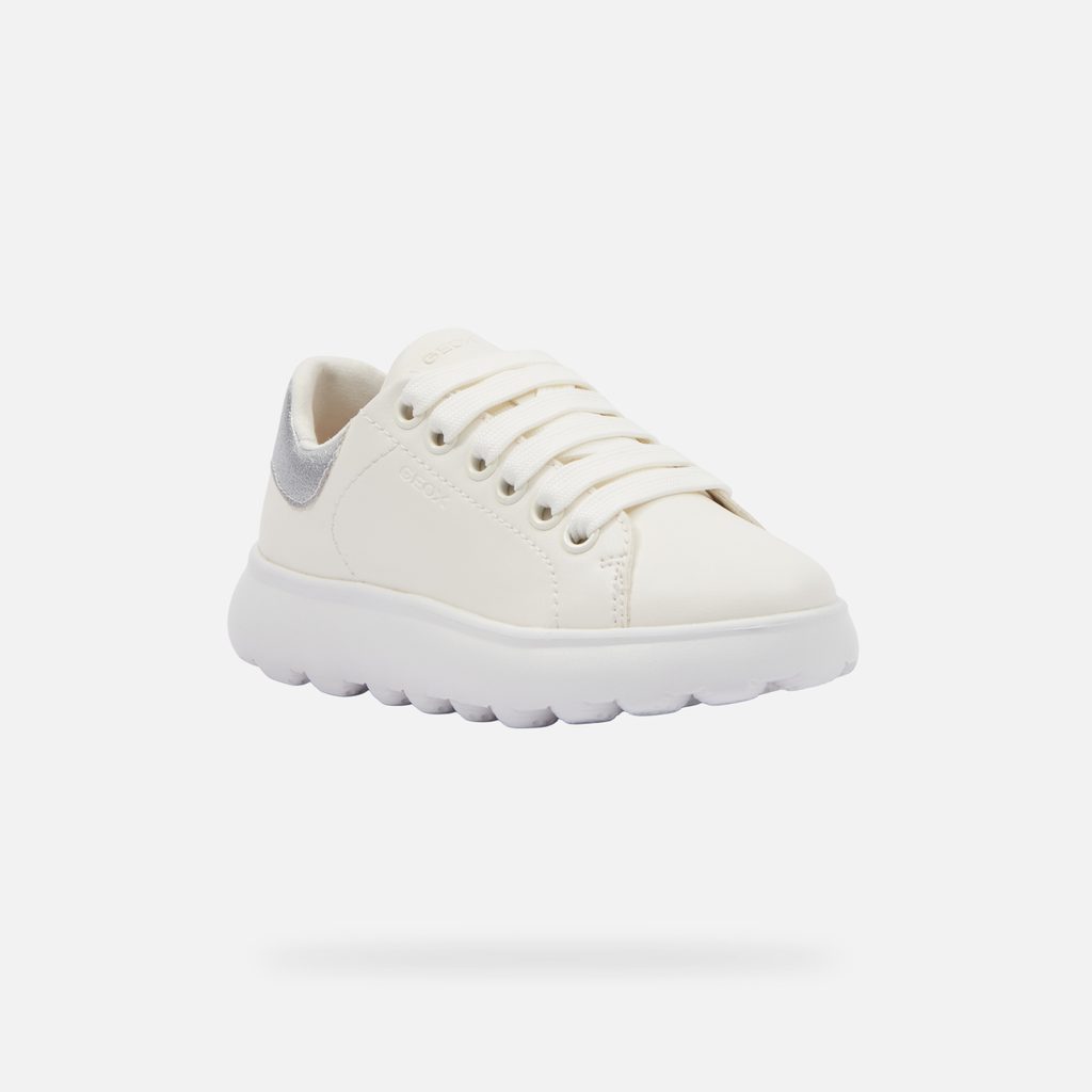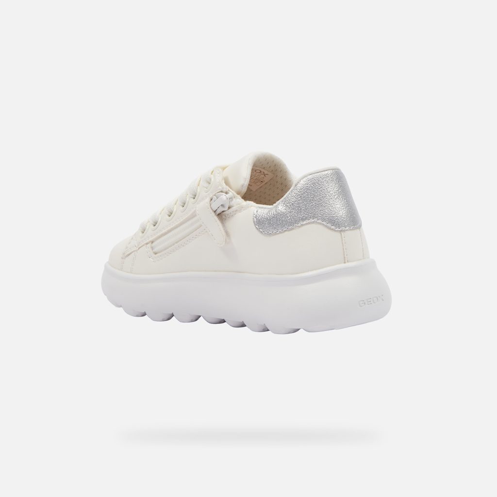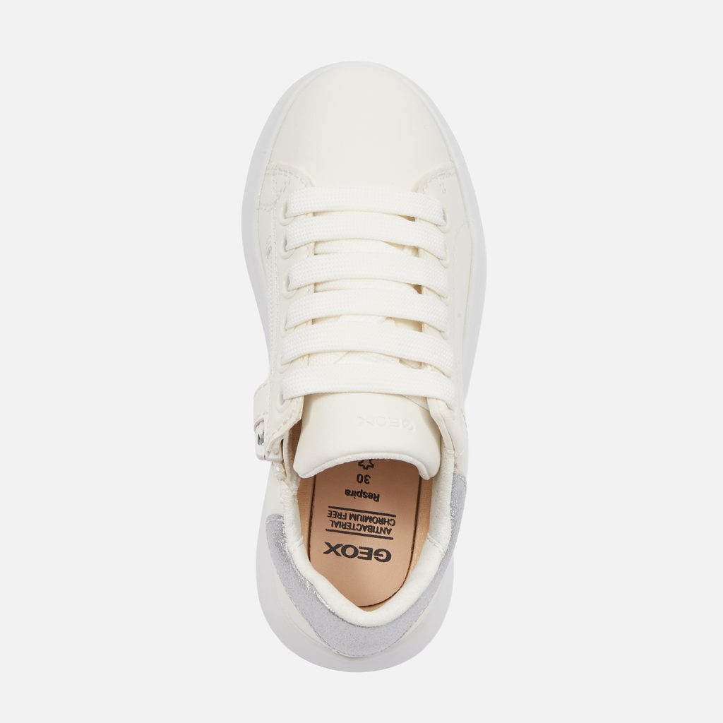 Krémové dívčí tenisky Geox Puffypop Girl s elegantním designem a stříbrnými detaily.