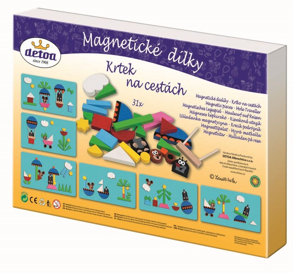Na kovovou tabulku si děti mohou skládat nepřeberné množství obrázků s motivem Krtečka a jeho kamarádky Myšky. Výrobek podporuje zručnost a fantazii dětí. Je vhodný pro děti od 3 let.