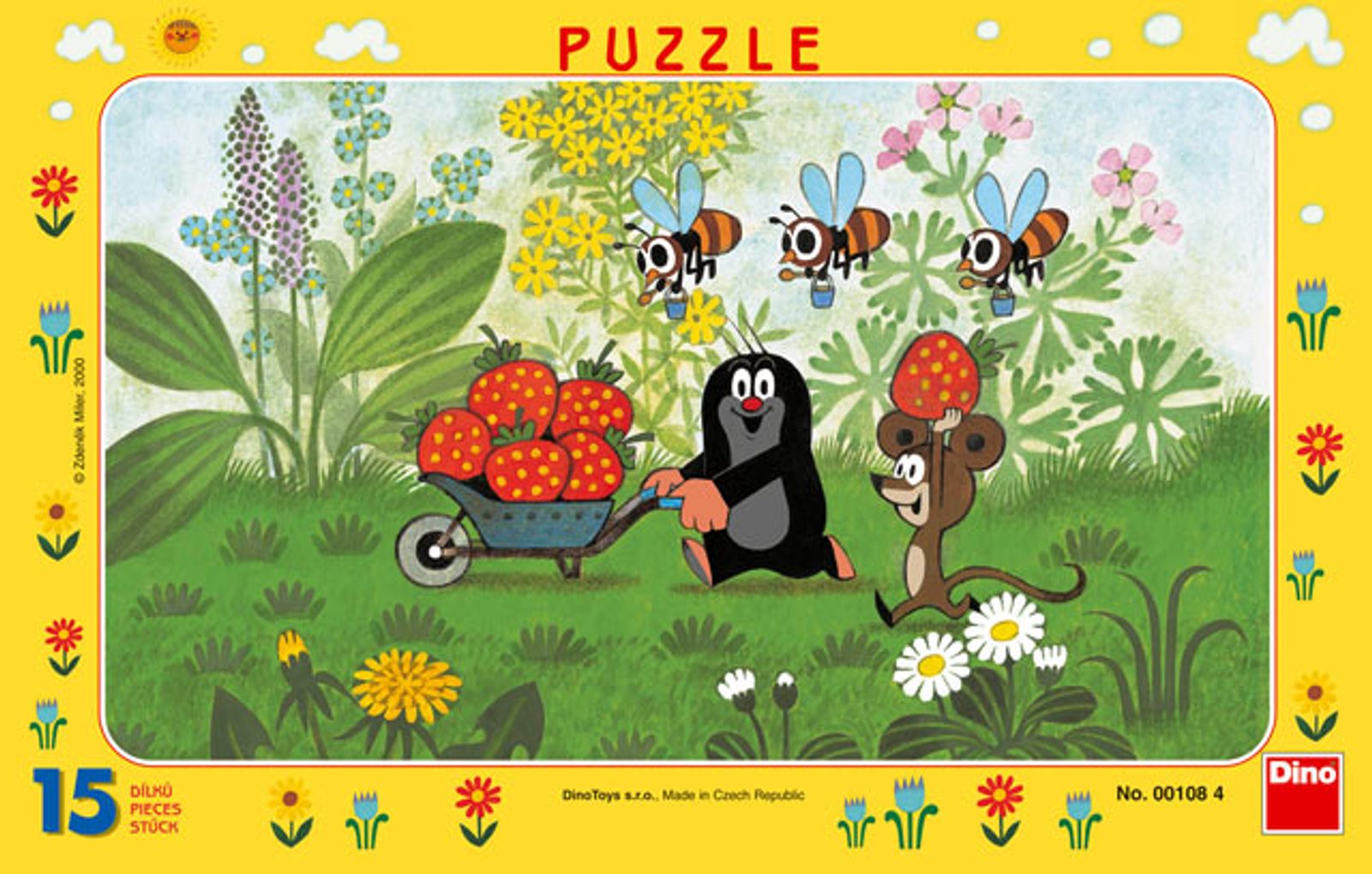 Deskové puzzle s motivem Krtečka na výletě obsahující 15 dílků. Velikost složeného obrázku je 25 x 14,5 cm. Vhodné pro děti od 3 let.