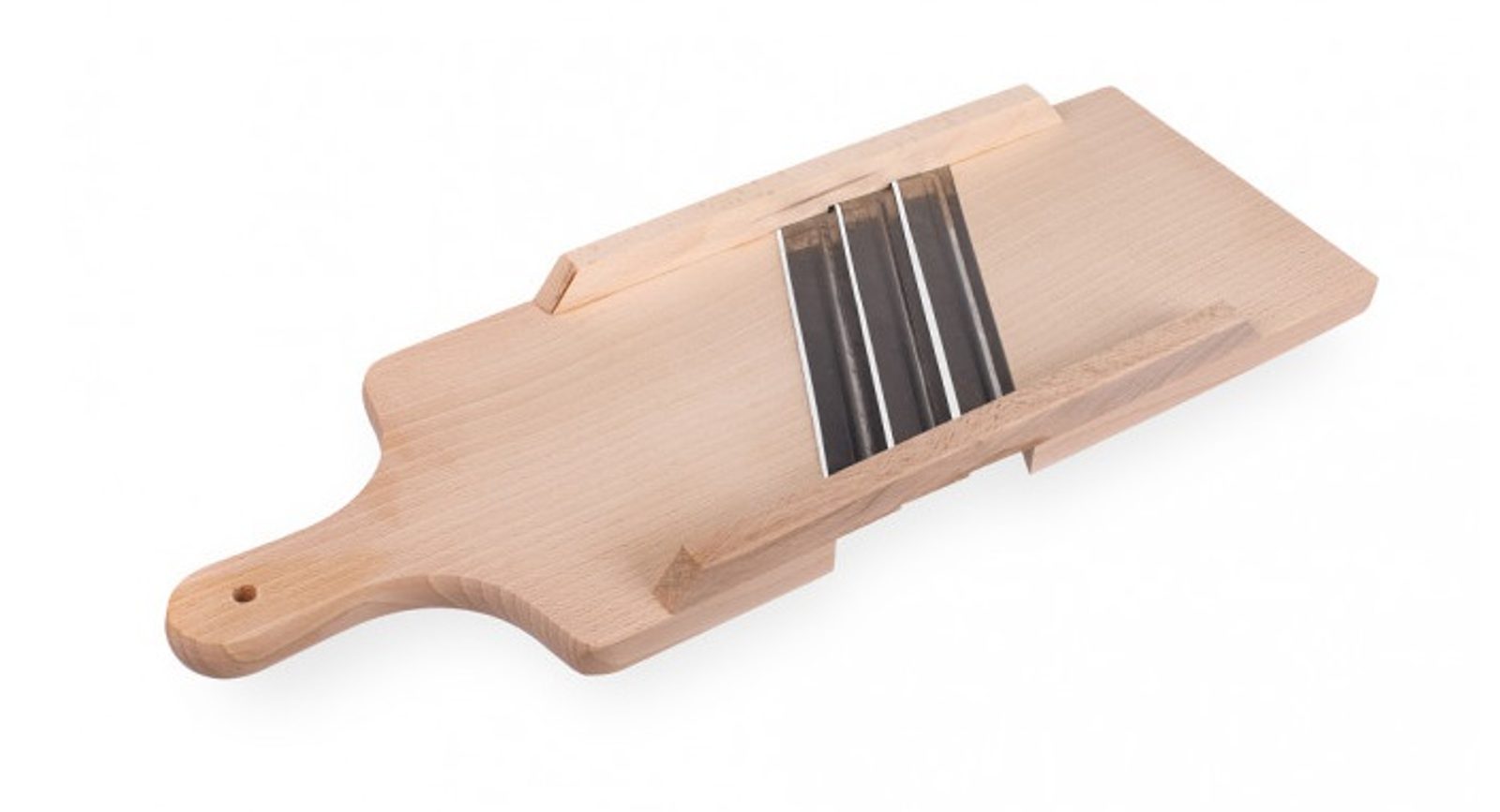 Velké dřevěné struhadlo - 3 břity z nerezové oceli. Pevné a praktické. Ideální pro malou gastronomii, domácí použití na zelí a jinou zeleninu.