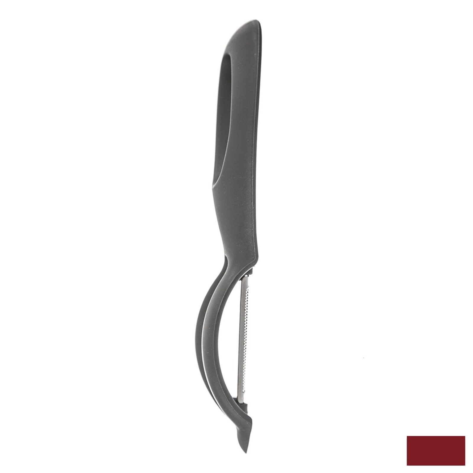 Škrabka na zeleninu a ovoce. Pro praváky i leváky. Materiál: plast, nerez. Barevný assort. Plastový hrot na odstraňování hlubších nečistot. Rozměry: d. 17 cm, š. 3 cm, ostří 4 cm.