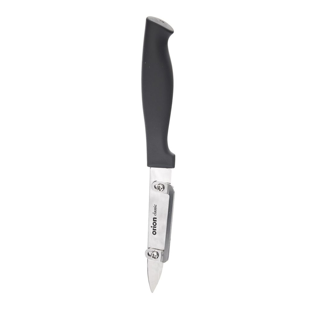 Škrabka na brambory, ovoce a zeleninu najde ve Vaší kuchyni široké uplatnění. Pro praváky. Nástavec lze také úplně sundat a nůž naostřit. Materiál: kvalitní nerezová ocel, plast. Je vhodná do myčky na nádobí. Rozměry: čepel 8,5 cm, š. čepele 1,5 cm, celková délka nože 19 cm. Po umytí v myčce dobře vysušte. Častým používáním myčky dochází k postupnému tupení ostří.