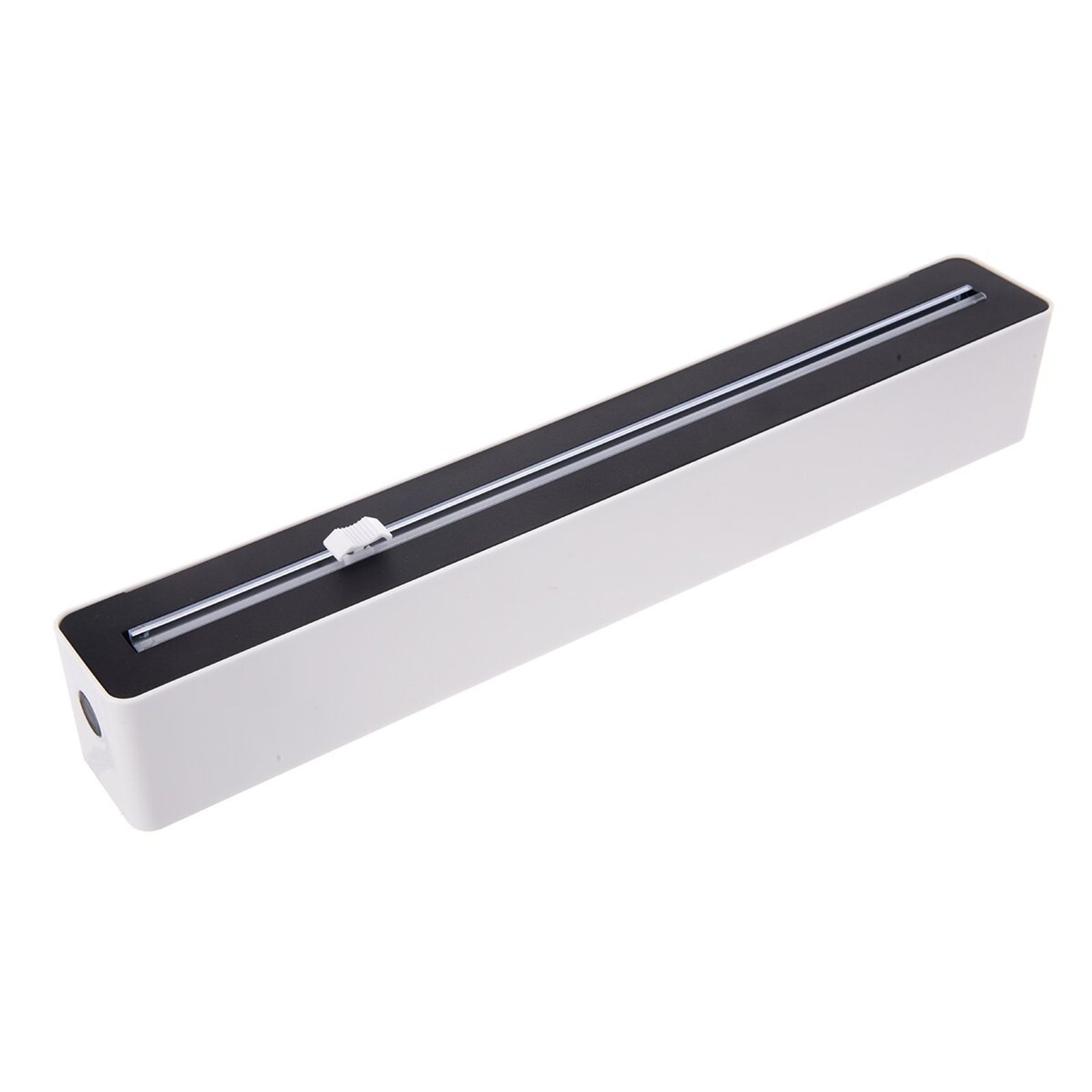Praktický zásobník na pečicí papír, alobal, potravinářskou folii vyřeší uskladnění i řezání na potřebné velikosti. Součástí je řezák a zarážky uvnitř zásobníku, nalepovací přísavky, které udrží řezák na svém místě. Lze ho umístit do šuplíku, ale i na linku či jiný hladký povrch. Zásobník lze nalepit na hladký odmaštěný povrch. Montážní materiál je součástí balení. Stisknutím pojistek na bocích uvolníte víko od zásobníku a do nástavců pro otáčení vložíte roli podle aktuální šířky (uvnitř zásobníku jsou zarážky), vysunete kousek folie přes vyříznutý okraj a uzavřete víko. Proužek s řezákem nalepíte pomocí samolepicí pásky do žlábku ve víku a řezák je připraven pro používání. Materiál: HIPS filament-houževnatý polystyrén, který se používá při 3D tisku (zásobník), plast ABS (víko), silikon (přísavky), PVC (nástavce). Rozměry: 36x5x5,5 cm.