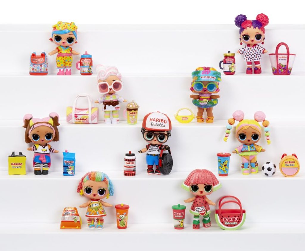 L.O.L. Surprise! se spojilo s ikonickým výrobcem sladkostí a společně s Haribo vám přináší panenky, jejichž doplňky jsou inspirované Haribo sladkostmi. Když dáš panence napít, některá bude plivat vodu.