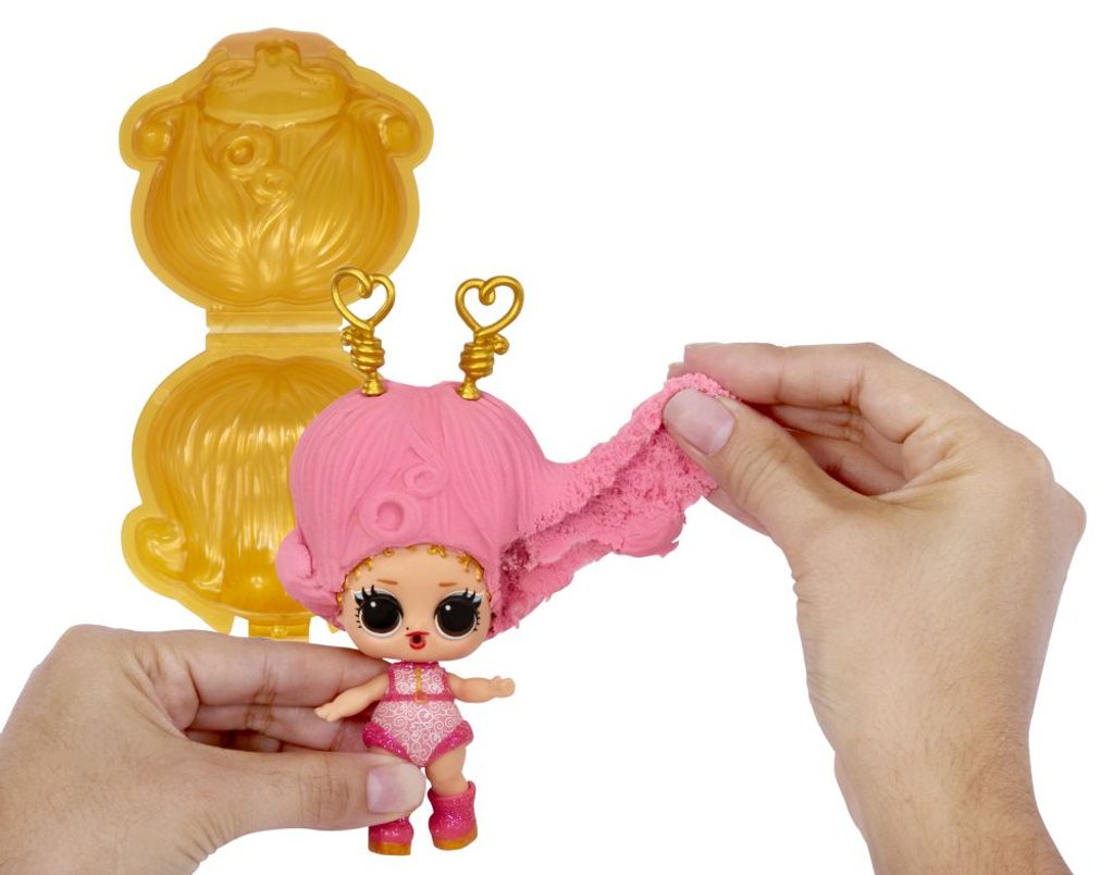 Velikost L.O.L. panenky: cca 8 cm. Představujeme úplně nové panenky s magickým pískem. Každá panenka má paruku vyrobenou z magického písku, který musíš rozmáčknout, abys v něm našla třpytivé překvapení. Magický písek můžeš použít znovu a panence třeba vyrobit jiný účes. Písek je jemný a dobře drží, když se pevně zavře do obalu. Každá z 9 panenek má jiný účes a jinak barevný písek.