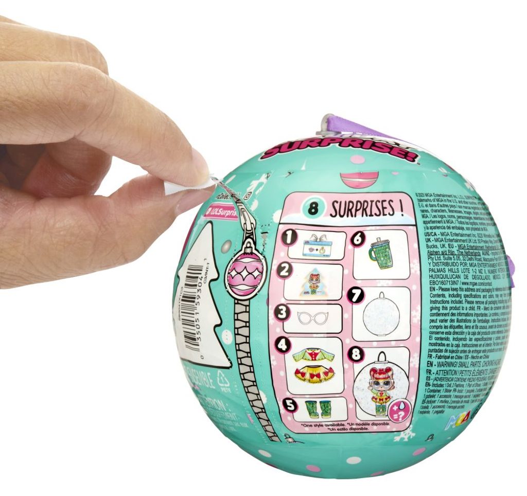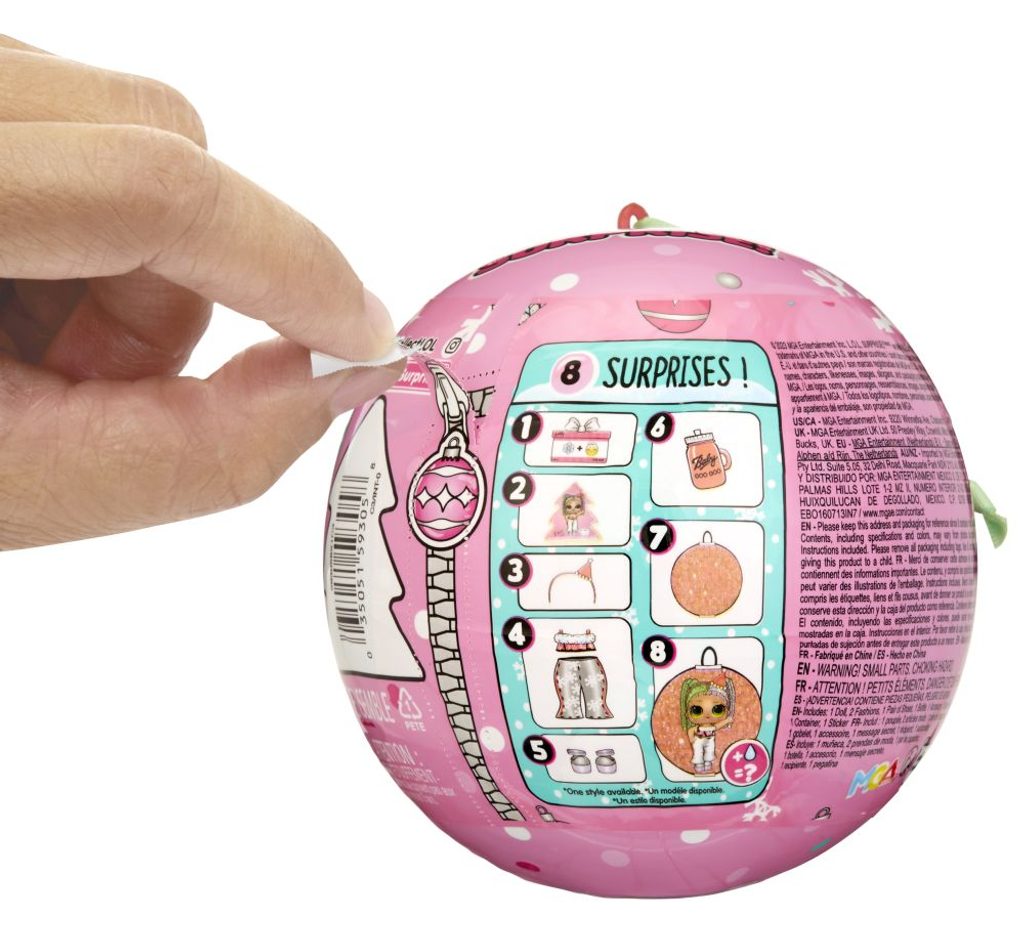 Velikost L.O.L. panenky: cca 8 cm. Oslavte vánoční svátky s novou limitovanou sérií. V balení najdeš panenku, která tě překvapí, když jí dáš napít z lahvičky. Doplňky a outfit jsou laděné tak, aby s tebou panenka mohla oslavit Vánoce.