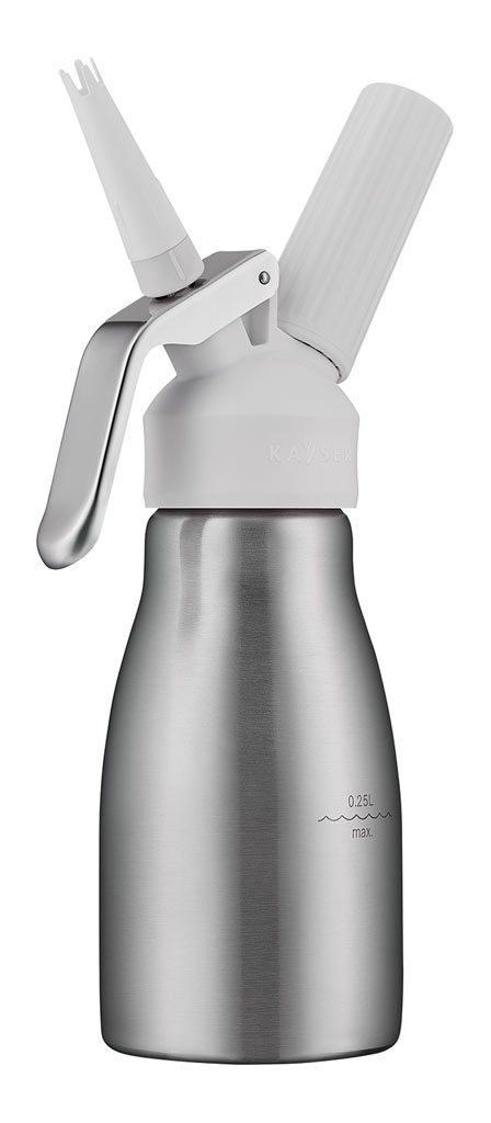 Připravte si poctivou domácí šlehačku pomocí šlehačkové láhev od rakouské firmy Kayser. Má hliníkové tělo s vnitřní povrchovou úpravou. Kromě sladké či slané šlehačky v ní vykouzlíte také nejrůznější pěny nebo těsto na lívance. Náplň je pod plynem N2O a v lednici vydrží až 10 dnů. Připravené těsto nebo chutnou šlehačku tak nemusíte spotřebovat najednou!