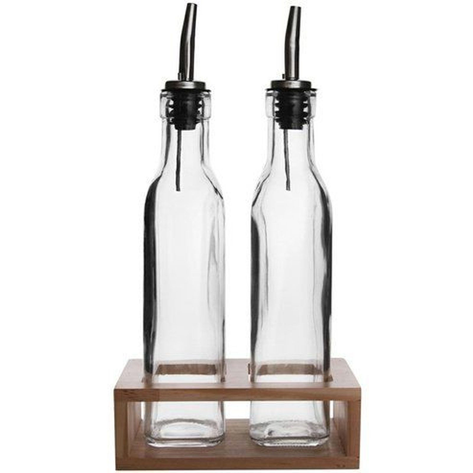 - láhev 0,3l, 2ks, ocet/olej 5x5x26cm, sklo+ stojan dřevo