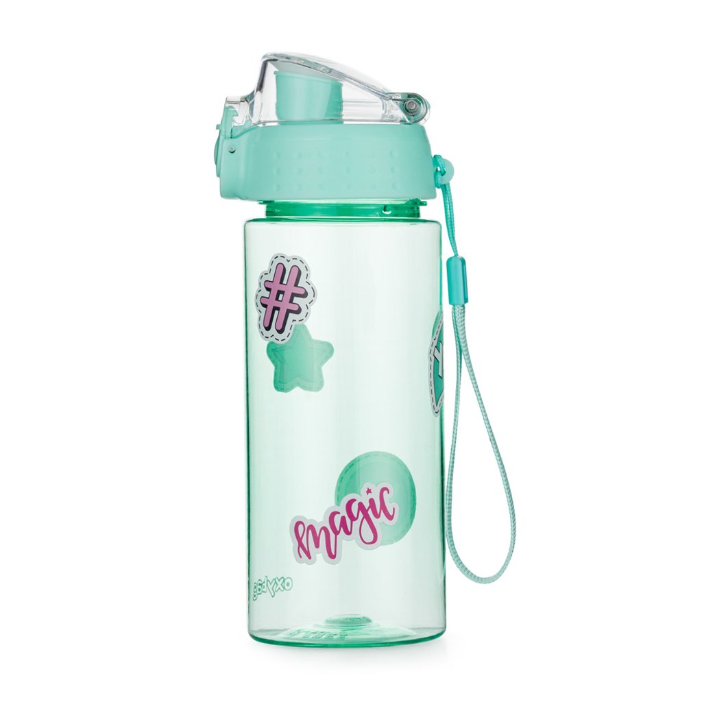 Dětská láhev na pití vyrobená z kvalitního a zdravotně nezávadného materiálu Tritan. Láhev je testována, neobsahuje BPA ani ftaláty. Vrchní část láhve je vybavena zámkem a otevíracím patentem, který funguje na principu změny polohy tlačítka (nahoru = zamčeno, dolů = otevřeno). Díky tomu je láhev snadno otevíratelná a zároveň chráněná proti nechtěnému vylití. Láhev má objem 500 ml, je vhodná do myčky na maximální teplotu 80 °C a je ideální pro děti od 5 let. Praktická šňůrka usnadňuje manipulaci a průměr pítka je 2,5 cm. Upozornění: Láhev není určena pro sycené nápoje.