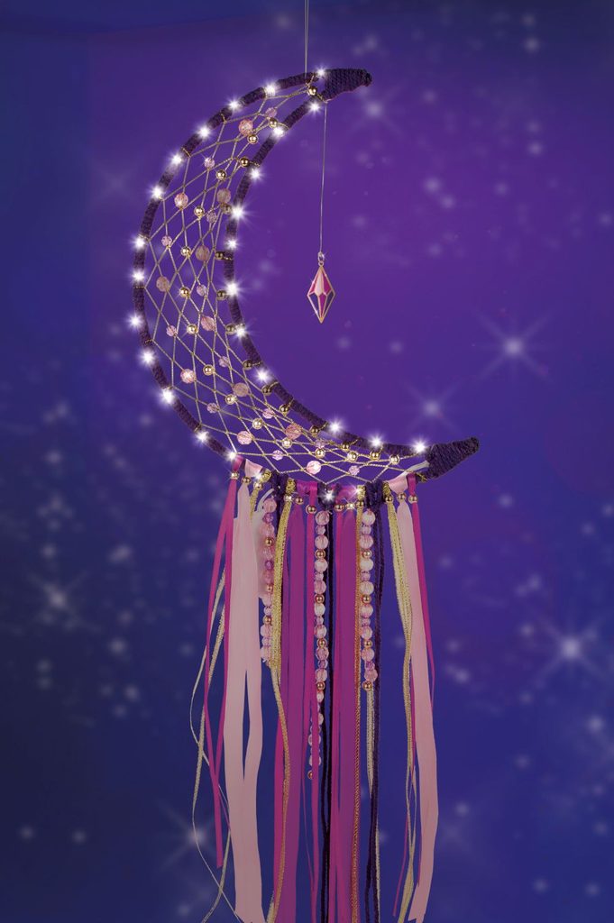 Balení obsahuje konstrukci ve tvaru měsíce, barevné korálky, stříbrnou šňůru, barevné provázky, peříčka na dekoraci, světýlka a instrukce. Vhodné od 8 let.