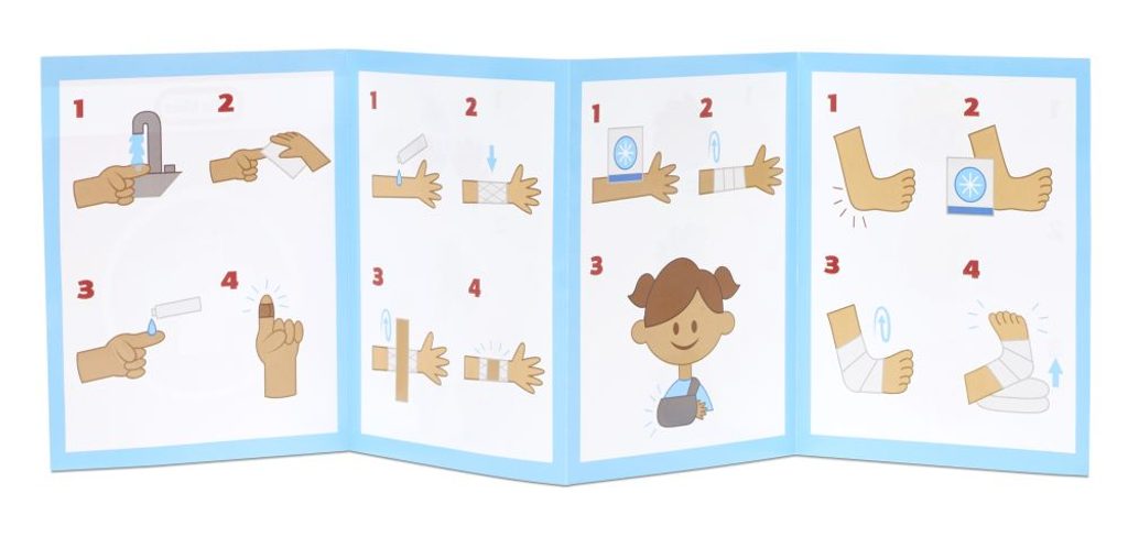 Zahrnuje 25 lékařských doplňků, jako je obličejová maska, dezinfekční prostředek na ruce, prak na rameno, tuba na mast, brožura první pomoci, pinzeta, nůžky, studený zábal, špachtle do krku na jazyk a další!