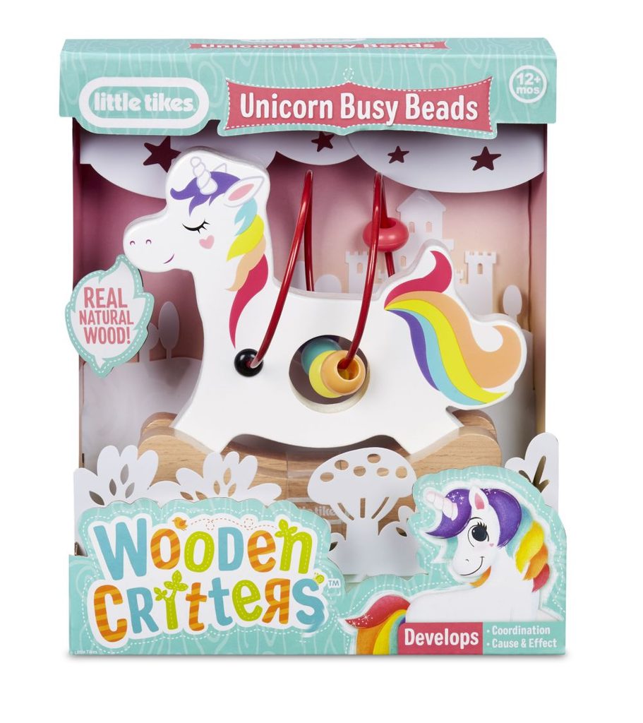 • 1 dřevěná hračka se 6 korálky Little Tikes nabízí jedinečnou řadu dřevěných hraček pro batolata, které poskytují jednoduchou klasickou hru v kreativním designu. Houpací zvířátko má na sobě bludiště se 6 korálky, které klouzají po barevném drátku. Zatlačte na hračku a bude se houpat. Zvířátko má vlastní jedinečný tvar a jasný barevný design.