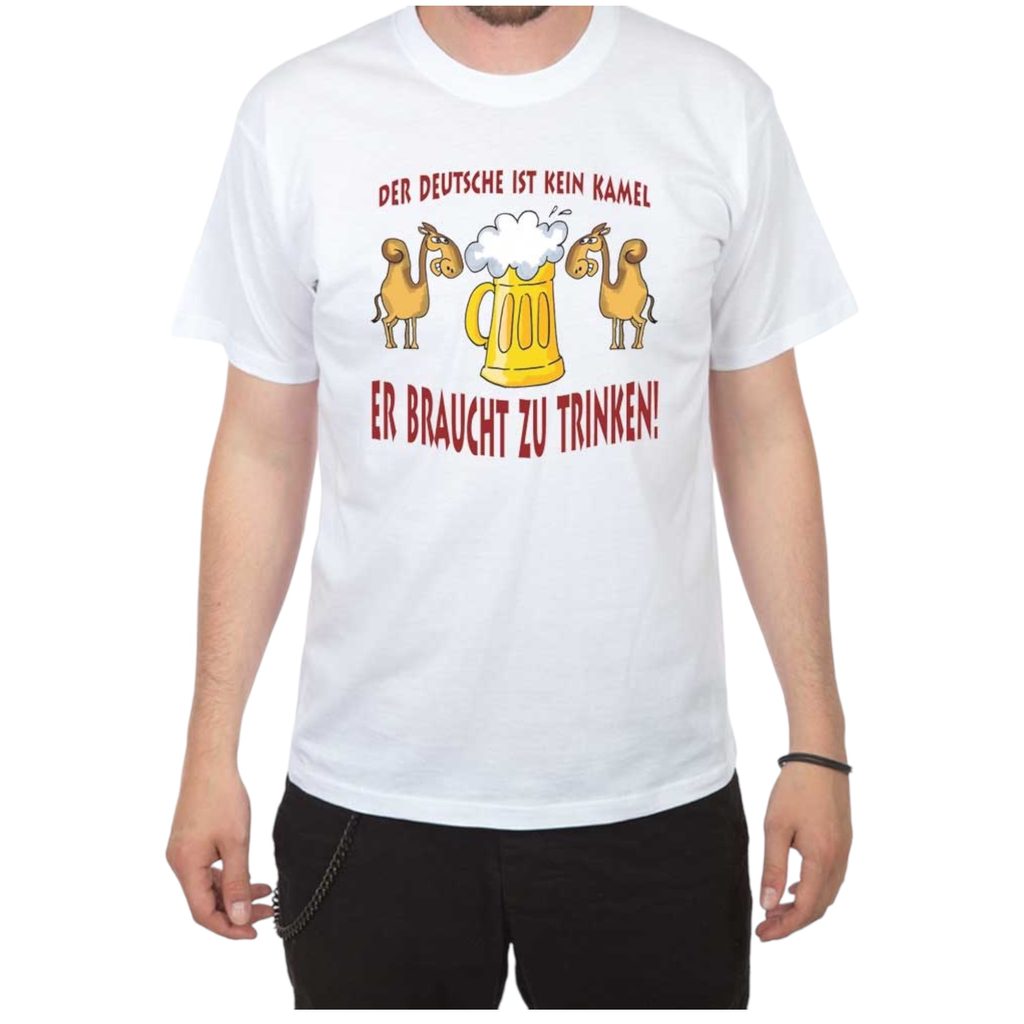 Lustiges T-Shirt: Der Deutsche ist kein Kamel, er braucht zu trinken!