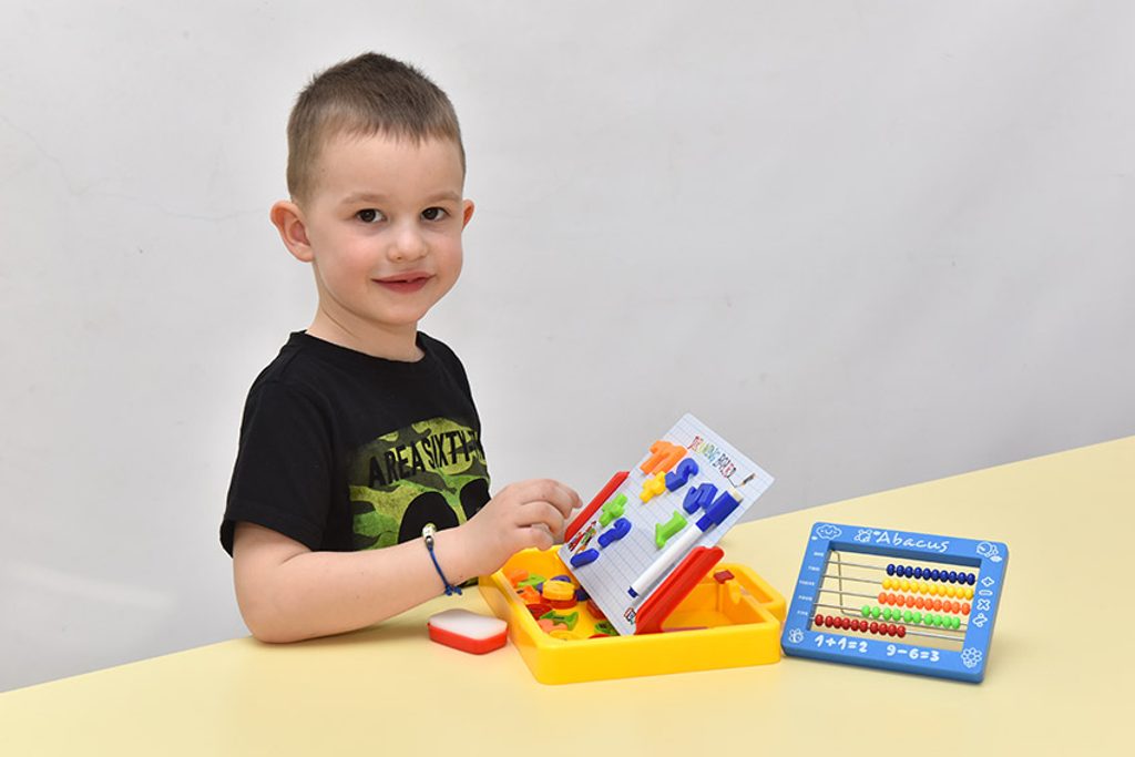 Magnetická tabulka 2v1. Na tabulku můžeš malovat přiloženou fixou a poté smazat. Součástí jsou magnetická čísla. Naučíš se základní matematické počty.