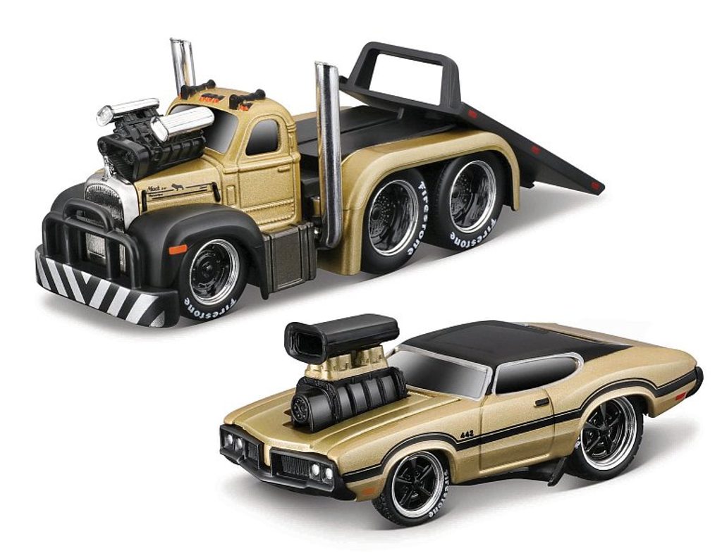 Maisto Maisto - Muscle Transports - 1953 MACK B-61 Flatbed 1970 Oldsmobile 442, 1:64