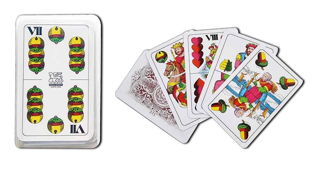 …herní sada zobrazuje na jednotlivých figurách legendu o Vilému Tellovi, obraz karet je s drobnými změnami stejný již 150 let. Obrazy jednotlivých es zobrazují roční období od jara do zimy. Hra…