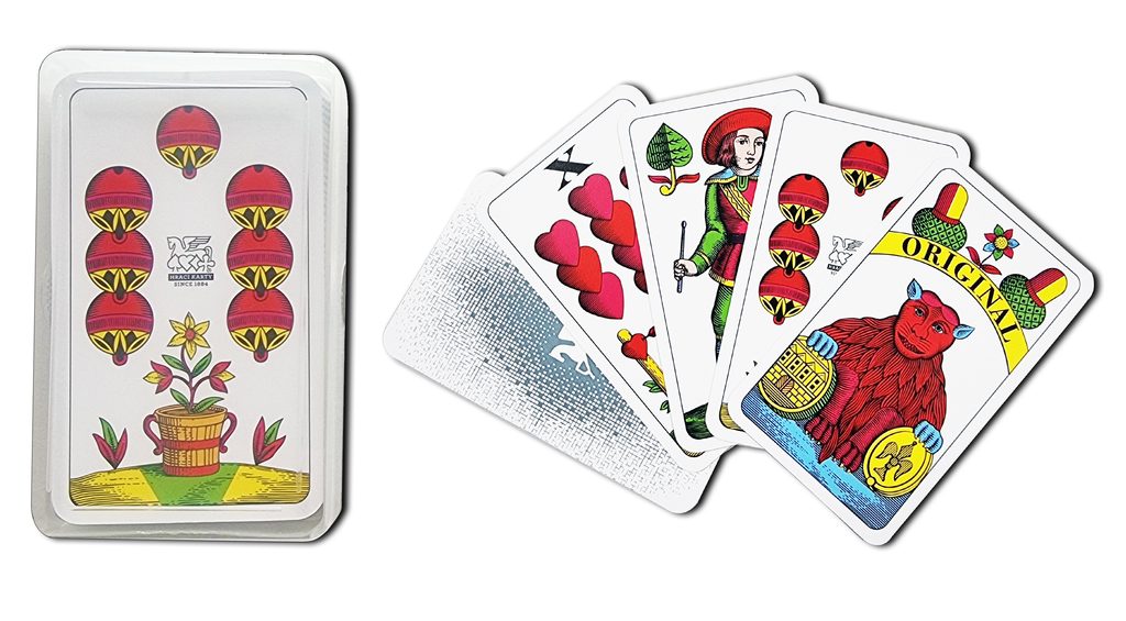 papír Casino Classic 310 g/m2 …naše hra vychází z tradičního karetního vzoru ve světě známého jako „pražský typ“. Tváří této hry je již 200 let žaludské eso s medvědem držícím dvě mince. Revers hry s bájným Pegasem je pro tuto hru charakteristický již více jak 50 let.