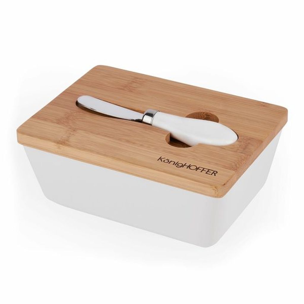 máslenka 17x12x7cm bílá+nožík, keramika/bambus