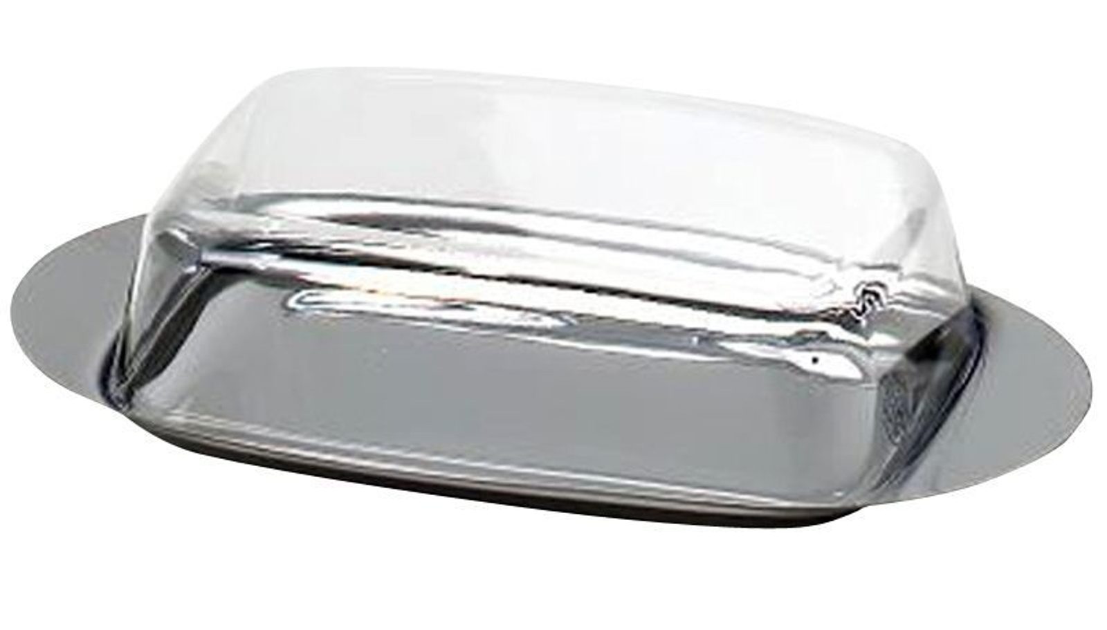 Servírovací nádoba na máslo. Je vhodná na 250 g másla. Rozměry: 19 x 11 x 5 cm Materiál základny: Nerezová ocel