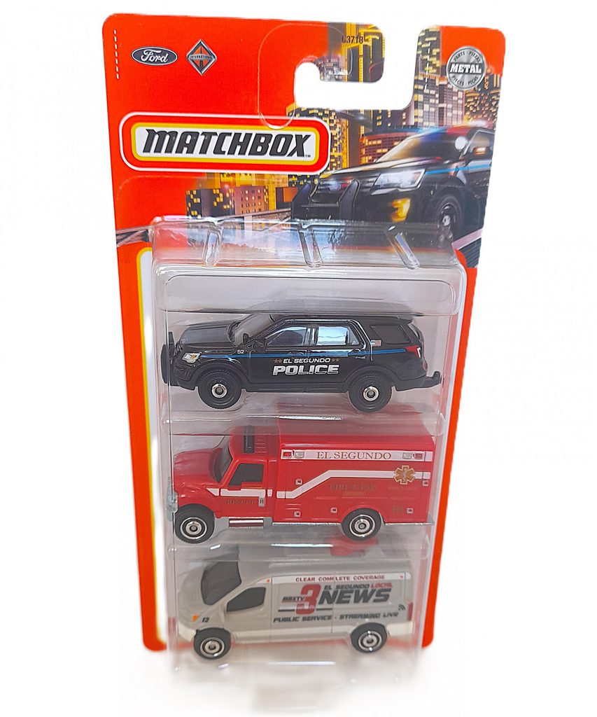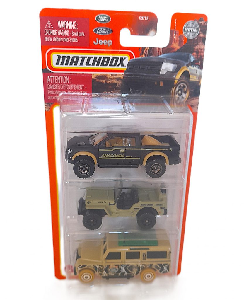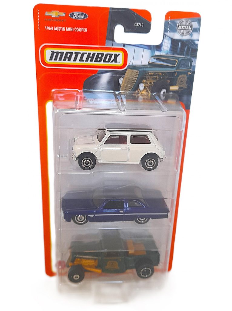 Tři pestrobarevné kovové angličáky Matchbox v jednom balení pro nová dobrodružství.
