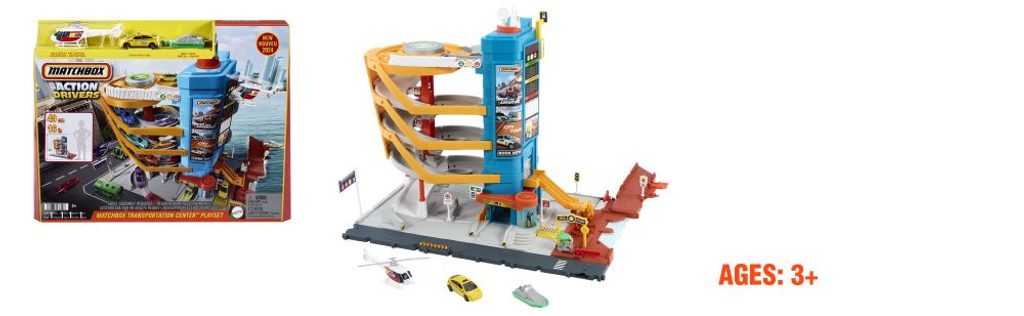 Vydejte se na vzrušující dobrodružství na zemi, ve vzduchu nebo na moři s dopravním centrem Matchbox™. Tento velkolepý herní set obsahuje pětiúrovňovou garáž, přístaviště lodí a přistávací plochu pro vrtulníky a jeho součástí je taxík, loď a vrtulník v měřítku 1:64 pro realistické vyprávění příběhů.