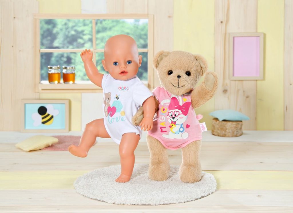 Nový kamarád pro panenky BABY born a pro všechny fanoušky BABY born. Nebo je to kamarádka? Na tom nezáleží, medvídek může být čímkoli: holčičkou, chlapečkem, miminkem, plyšovým medvídkem, kamarádem na hraní, mazlíčkem, princeznou nebo třeba jezdcem na skútru – od útlého věku až do doby, kdy už je dětství jen vzdálenou vzpomínkou.