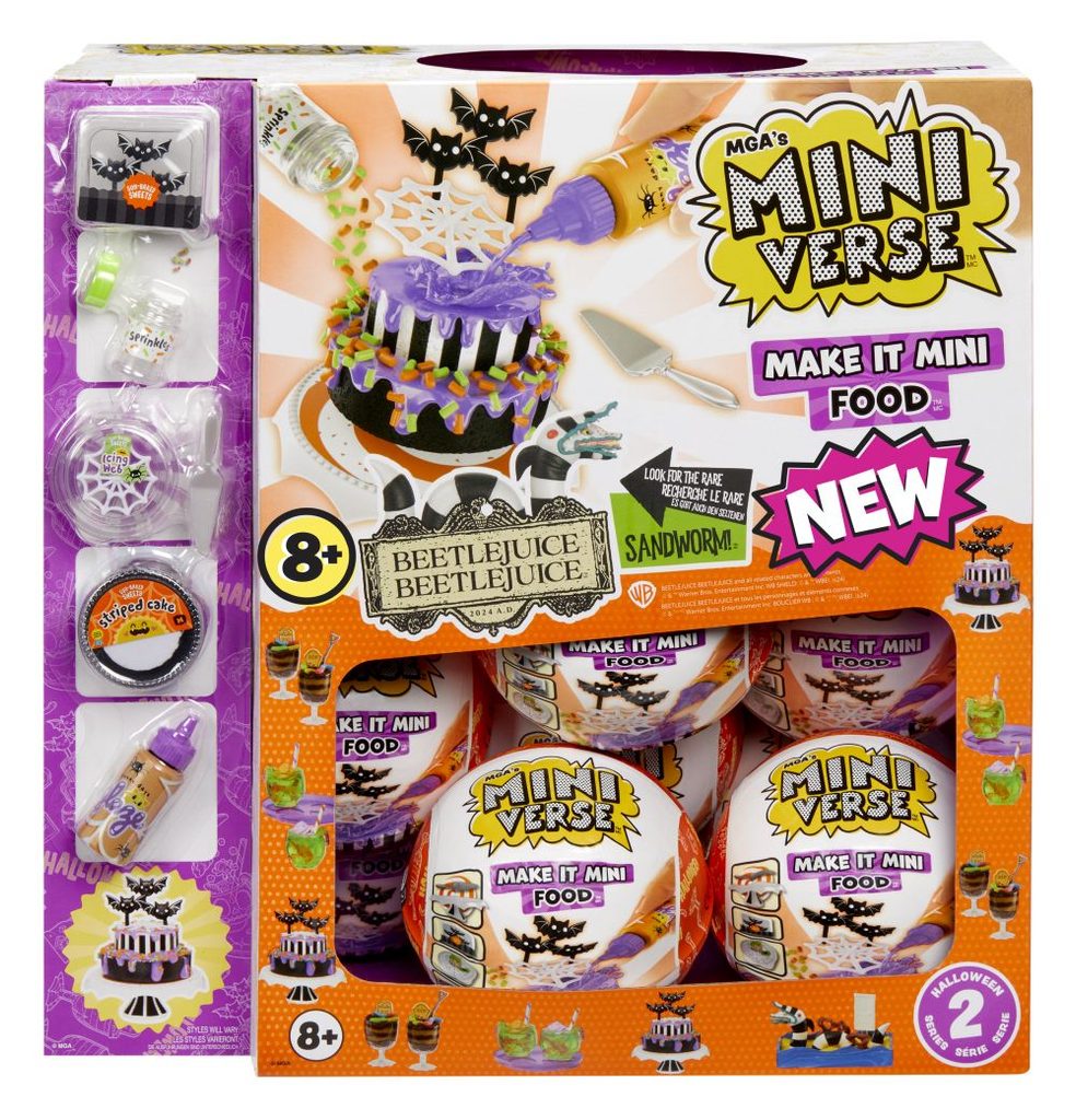 Rozbal strašidelné jídlo nebo nápoj ve formě mini replik. Je tak miniaturní, ale i přesto s neuvěřitelně realistickými detaily! Jídlo nebo nápoj připravíš z ingrediencí ve tvém balíčku, pak ho necháš alespoň 5 minut na přímém slunci vytvrdnout a můžeš servírovat! V této sérii můžeš vyrobit strašidelný dort, poháry špíny, hmyzí punče a Beetlejuice písečného červa.