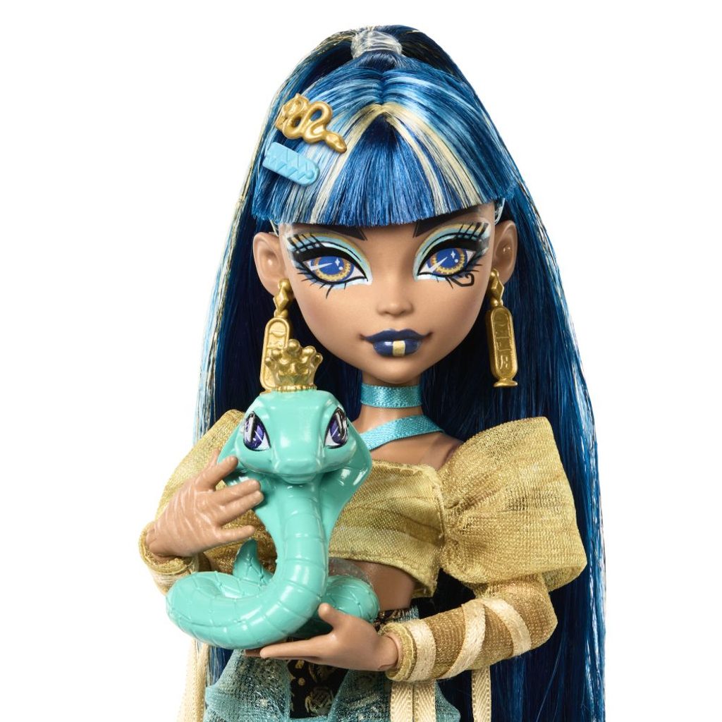 Tato panenka Monster High™ je fakticky mumiózní! Cleo De Nile je od hlavy až k patě oblečená ve svém elegantním stylu. Její strašidelná kobra Hissette je také připravena zapojit se do děsivých dobrodružství! Se svým kloubovým tělem a příšerkovskými doplňky pro vyprávění příběhů je panenka Cleo skvělým dárkem pro děti od 4 let.