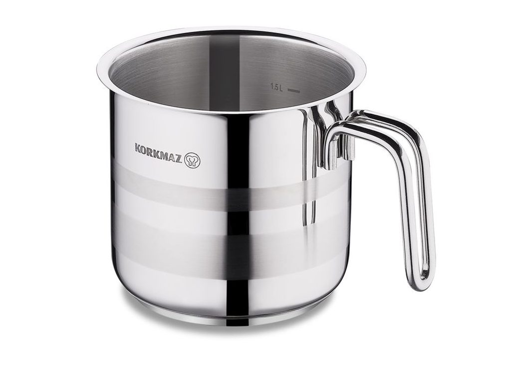 Nerezový mlékovar o objemu 2 l s dvojitou stěnou pomůže při vaření mléka, pudinků, rýžových nákypů a omáček, u nichž hrozí připálení.