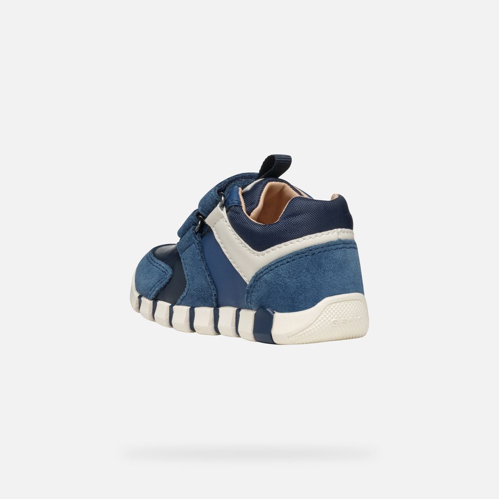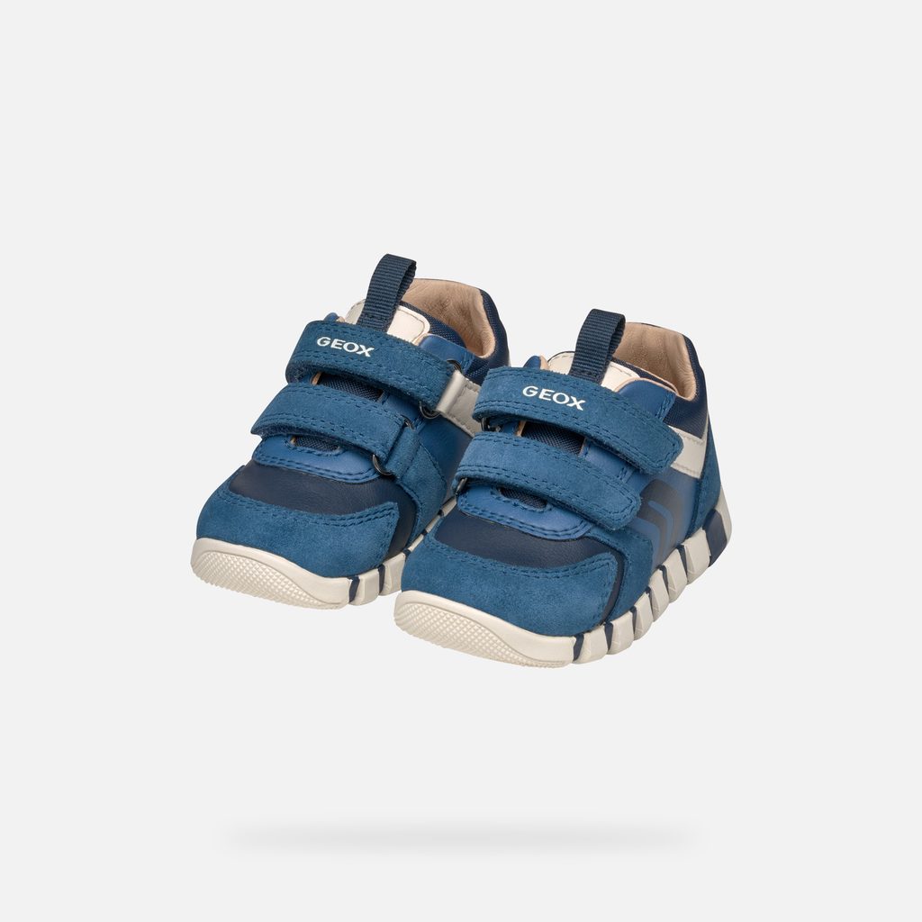 Modré chlapecké boty pro první krůčky Geox Iupidoo Boy s praktickými suchými zipy pro snadné obouvání.