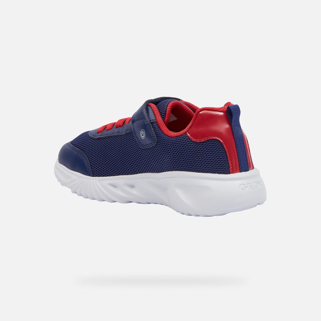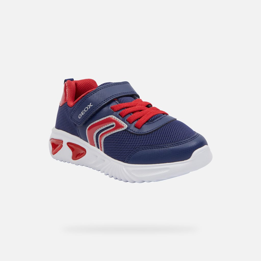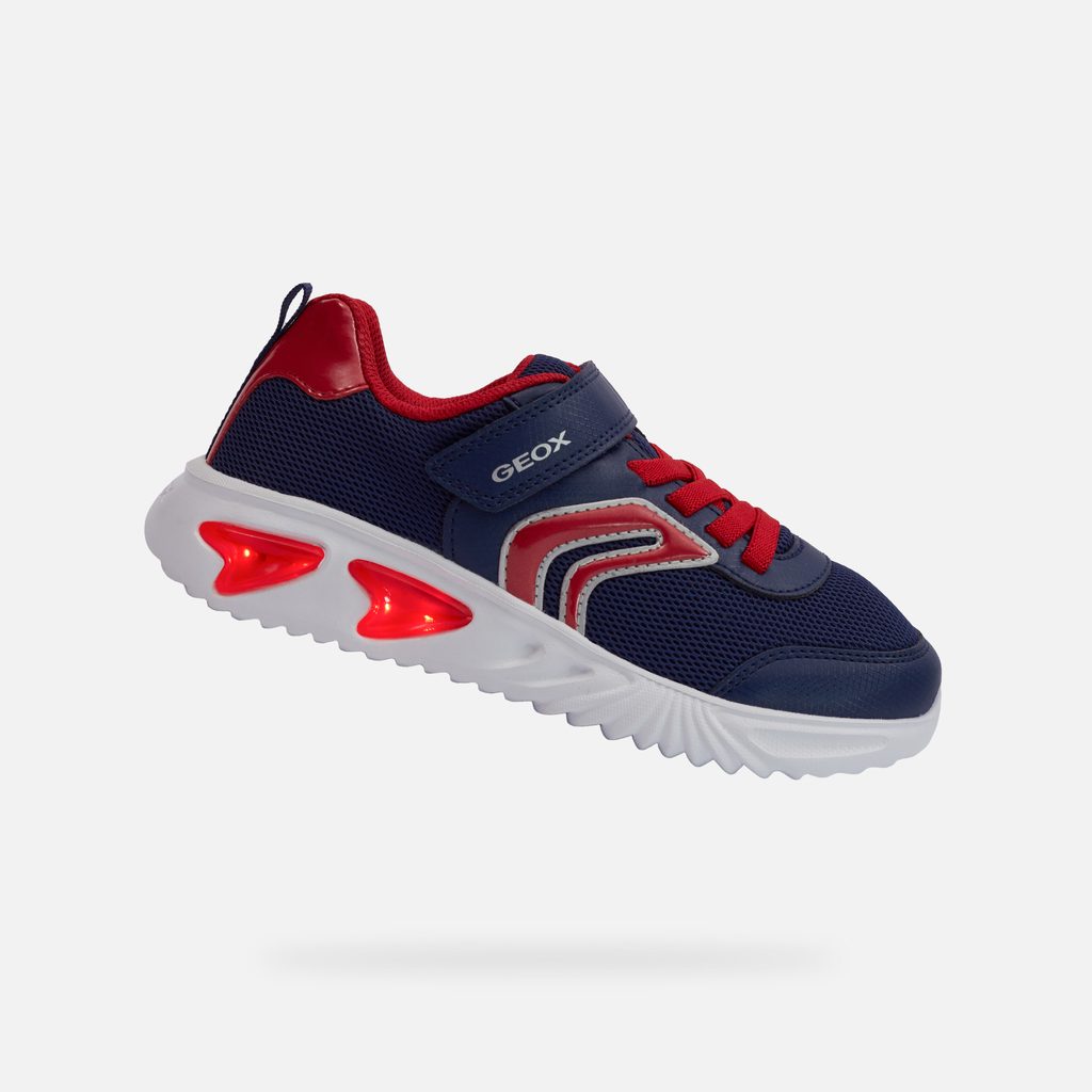 Svítící prvky na botách potěší každého mladého nositele a zajistí lepší viditelnost za šera. Dopřejte svému dítěti pohodlí a styl s těmito kvalitními teniskami Geox. Stylové chlapecké tenisky Geox Assister v modré barvě s červenými a bílými detaily zaujmou dynamickým designem. Výrazné vlnité prvky na bocích, síťovaný svršek a červené akcenty na patě a tkaničkách dodávají botám sportovní vzhled.