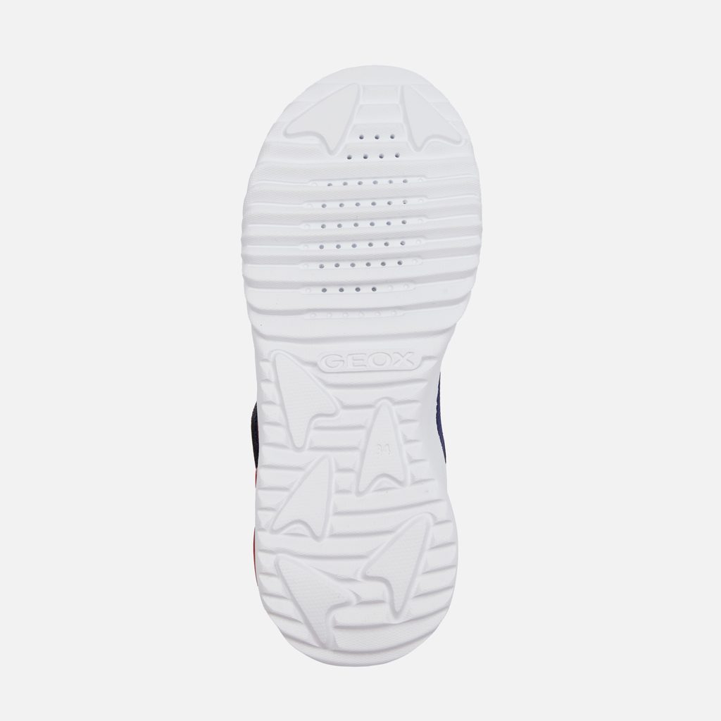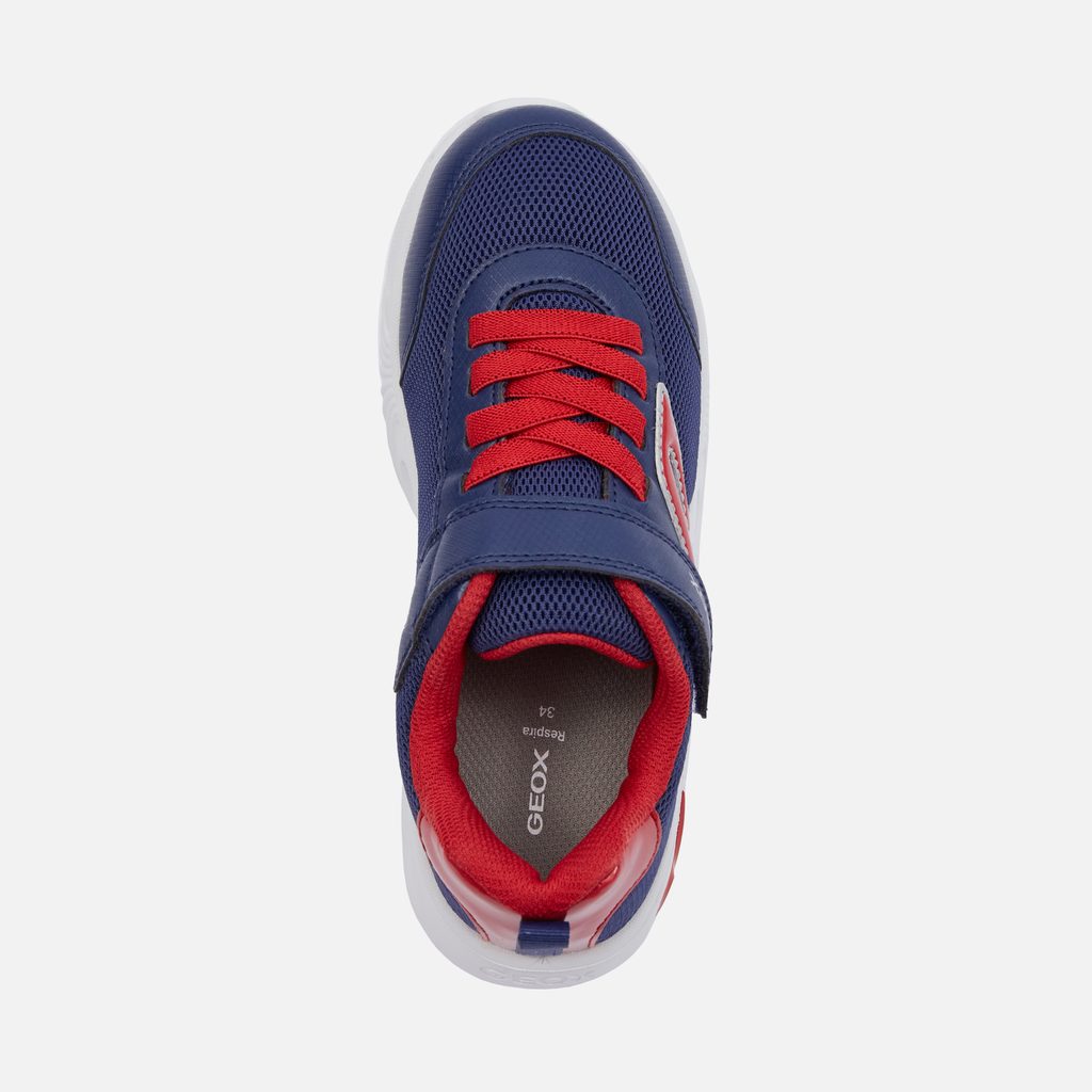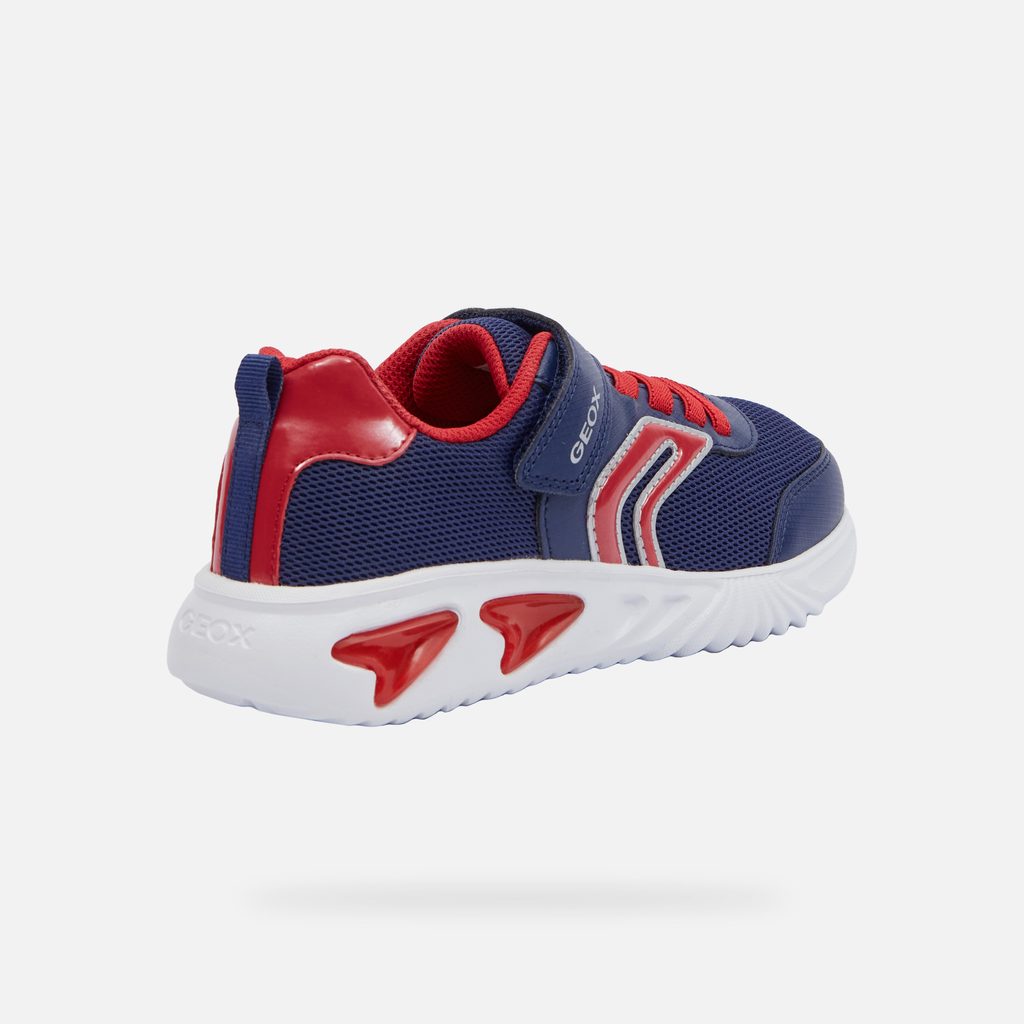 Svítící prvky na botách potěší každého mladého nositele a zajistí lepší viditelnost za šera. Dopřejte svému dítěti pohodlí a styl s těmito kvalitními teniskami Geox. Stylové chlapecké tenisky Geox Assister v modré barvě s červenými a bílými detaily zaujmou dynamickým designem. Výrazné vlnité prvky na bocích, síťovaný svršek a červené akcenty na patě a tkaničkách dodávají botám sportovní vzhled.