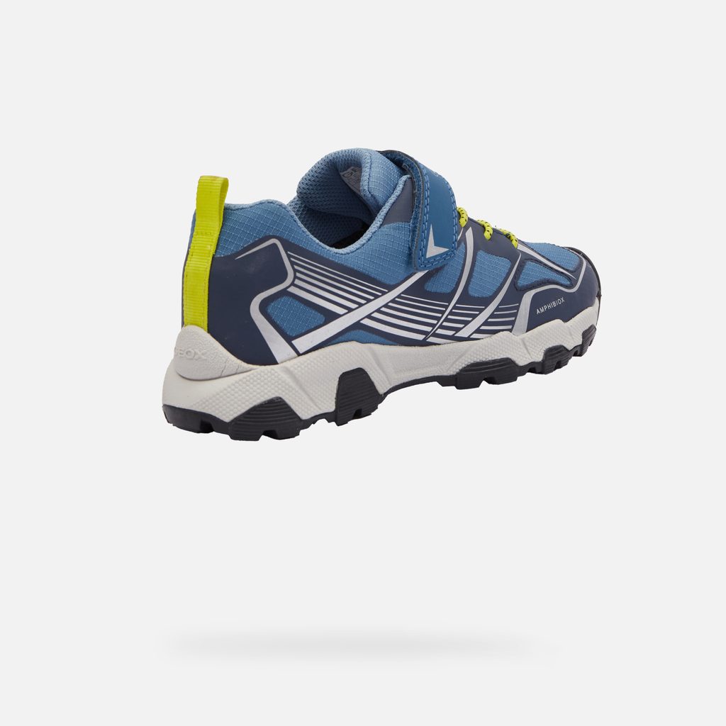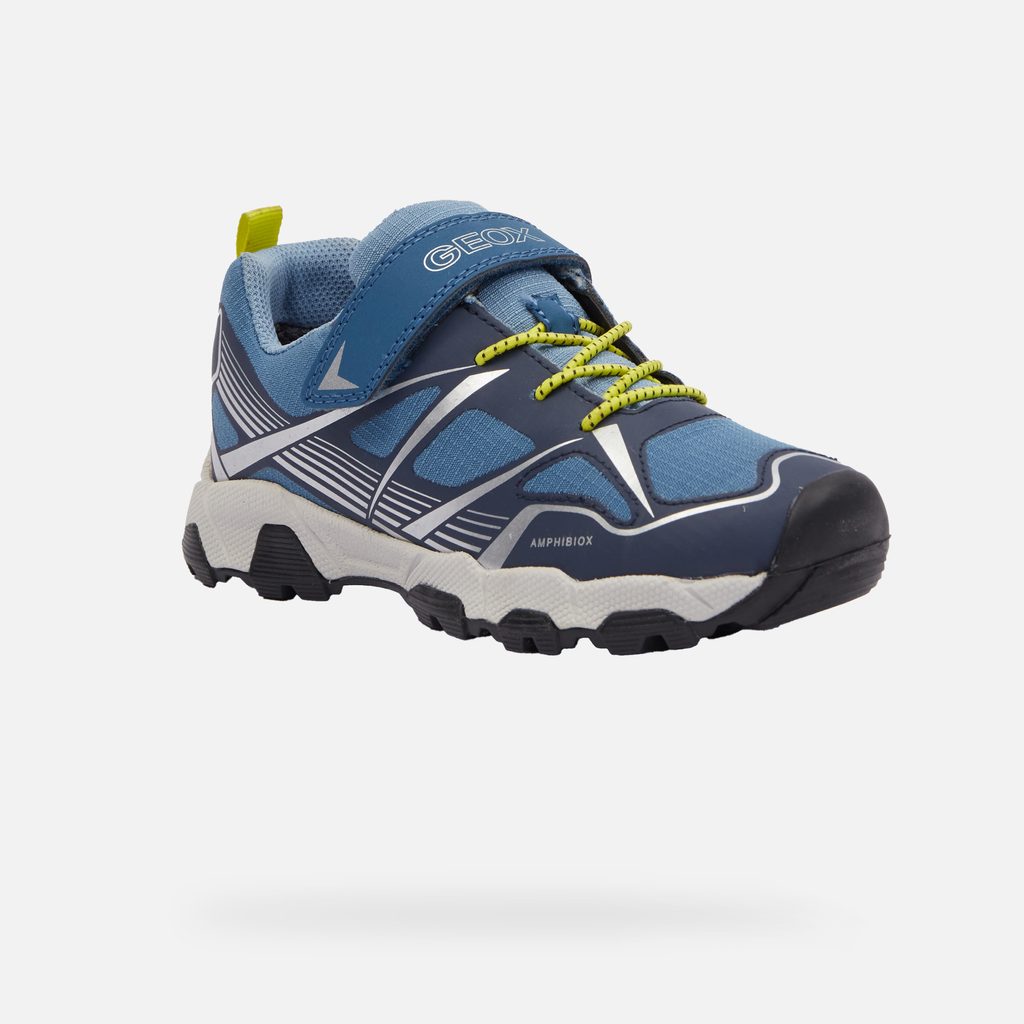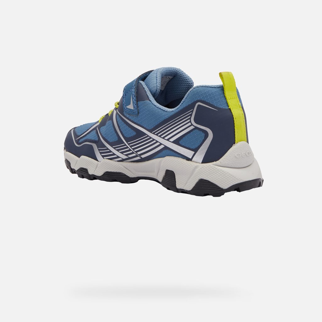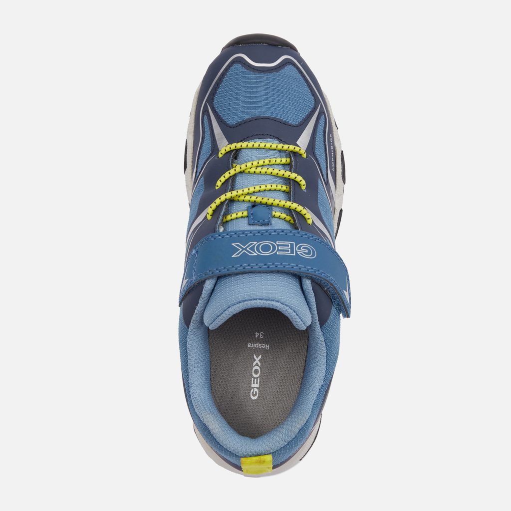 Díky kombinaci praktického designu a pokročilých technologií zajistí tyto tenisky pohodlí a suché nohy při každém dobrodružství. Sportovní chlapecké tenisky Geox Magnetar B ABX v modrém provedení s kontrastními neonovými žlutými a bílými detaily. Dynamický design podtrhují geometrické vzory a pruhy na bocích. Praktické zapínání na suchý zip doplňují tkaničky s neonovými poutky.