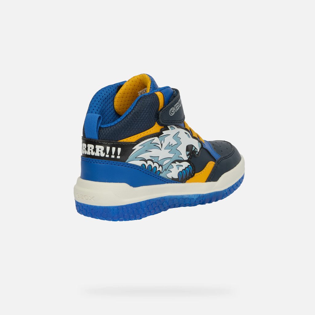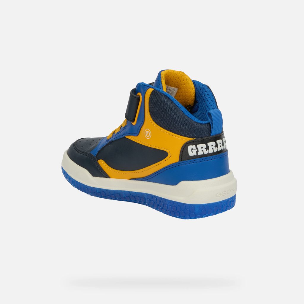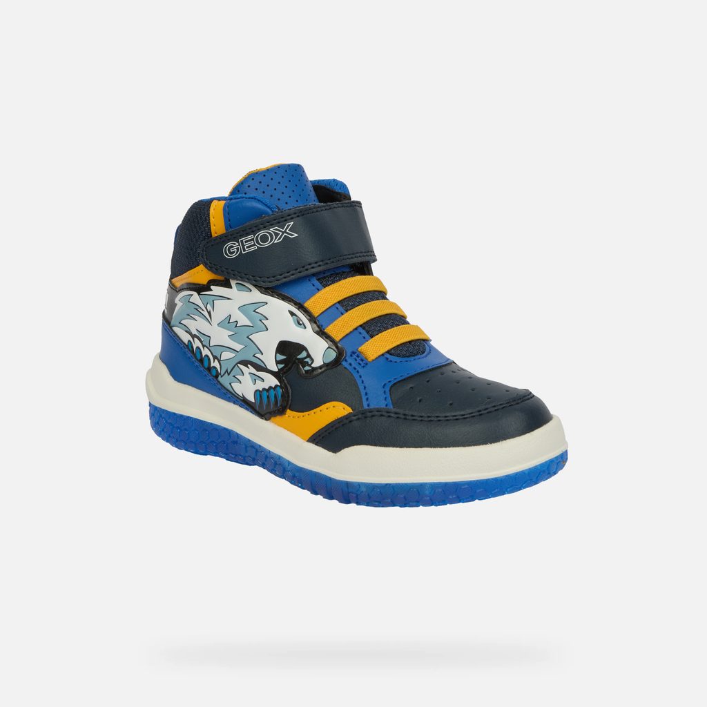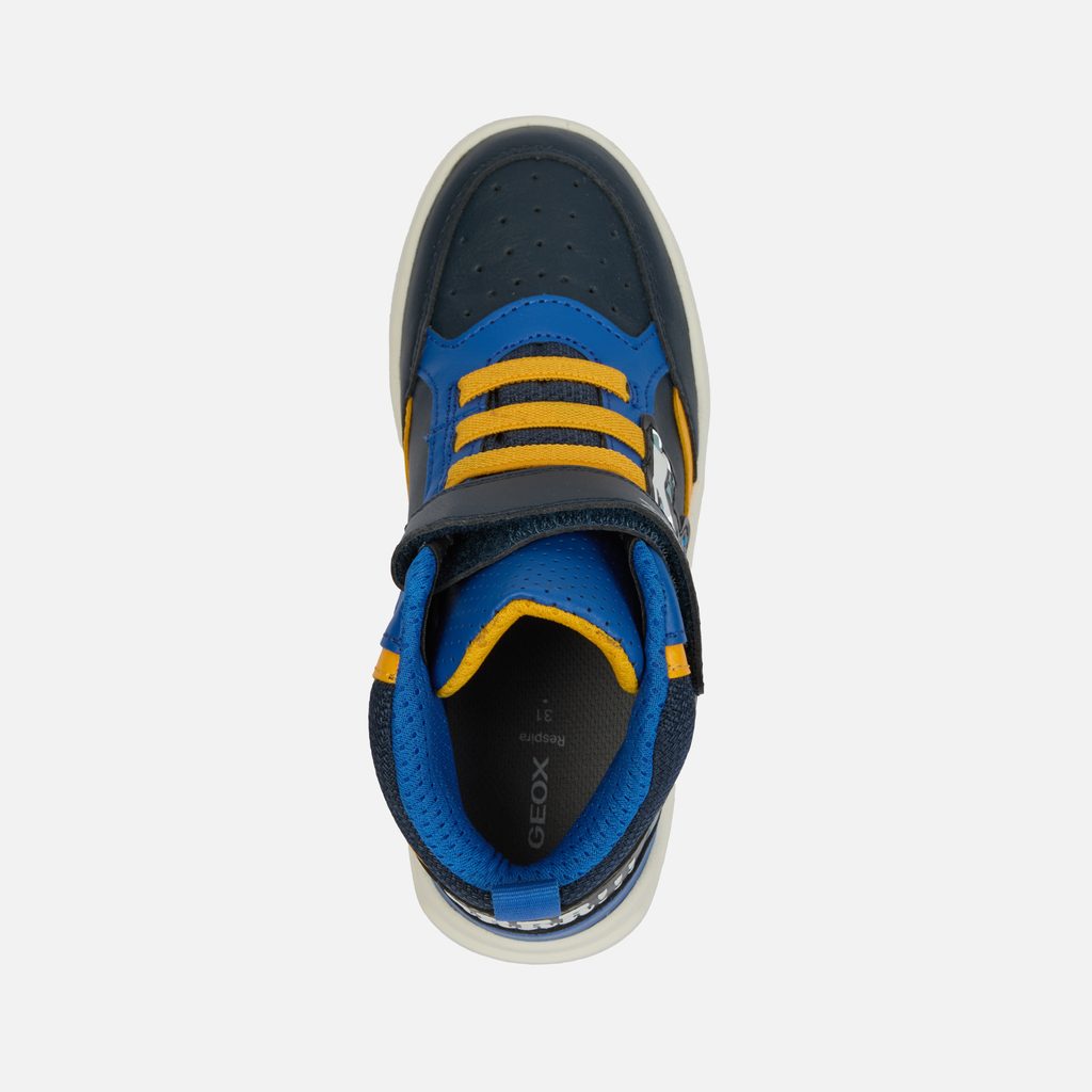 Dopřejte svému synovi tenisky, které spojují moderní technologie, bezpečnostní prvky a atraktivní design. S botami Geox Buzzerlight Boy bude každý krok zábavný a pohodlný. Modré svítící tenisky pro malé dobrodruhy s grafickým motivem blesku a praktickým zapínáním na suchý zip. Průsvitná modrá podešev dodává botám moderní vzhled, zatímco žluté akcenty vytváří energický kontrast.
