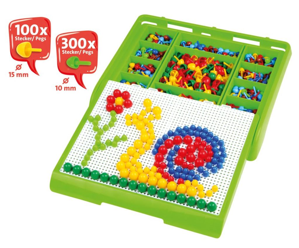 Přenosný úložný kufřík s vysouvacími panoramatickými deskami pro vkládání kolíčků. Kufřík slouží zároveň k uložení kolíčků. Kufřík obsahuje 300ks barevných kolíčků 10mm a 100ks barevných kolíčků 15mm.