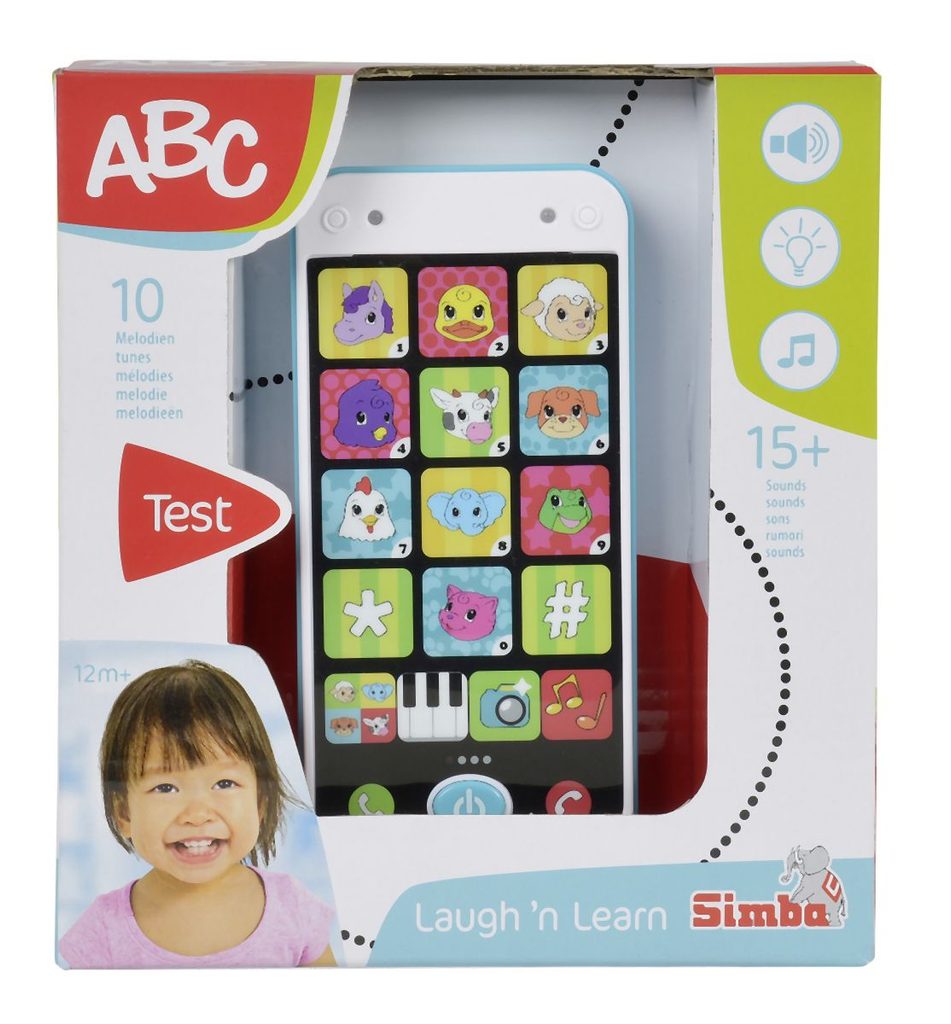 Mobilní telefon pro nejmenší se světelným a zvukovým efektem - melodie, hlasy zvířátek a další zvuky. Výška telefonu 13,5 cm.
