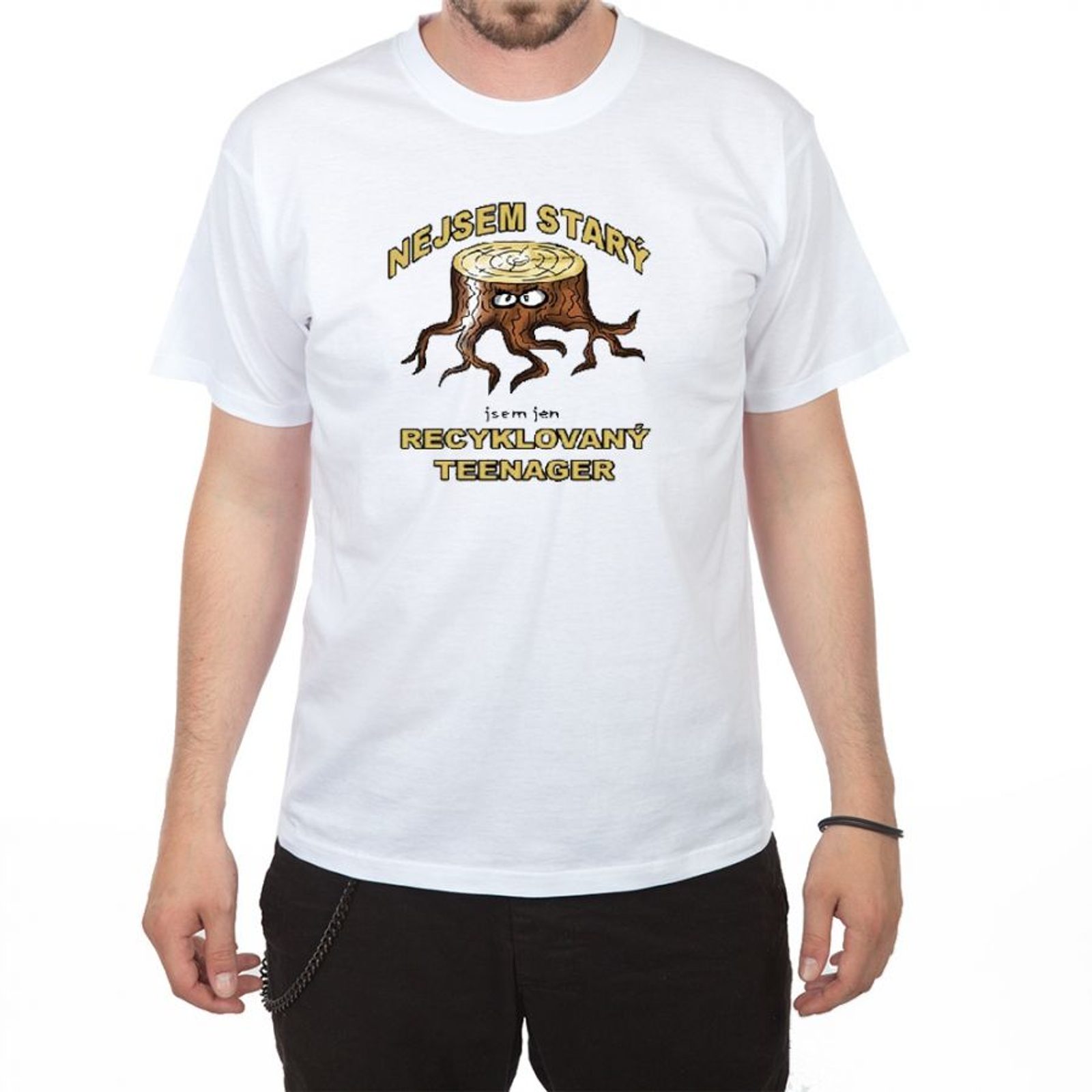 Originální a vtipní tričko s nápisem "Nejsem starý, jsem jen recyklovaný teenager" je ideálním dárkem k narozeninám nebo jen tak pro radost. Dárkem pobavíte a oslavenec jej jistě vynosí.