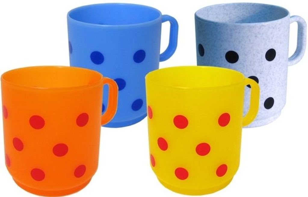 Plastový hrnek vhodný pro děti od jednoho roku. Je lehký, odolný a snadno omyvatelný. Hrnek s puntíkovým potiskem je vyroben z kvalitního plastu. Plast odolný do 120°C. Objem 250 ml. Assort barev.