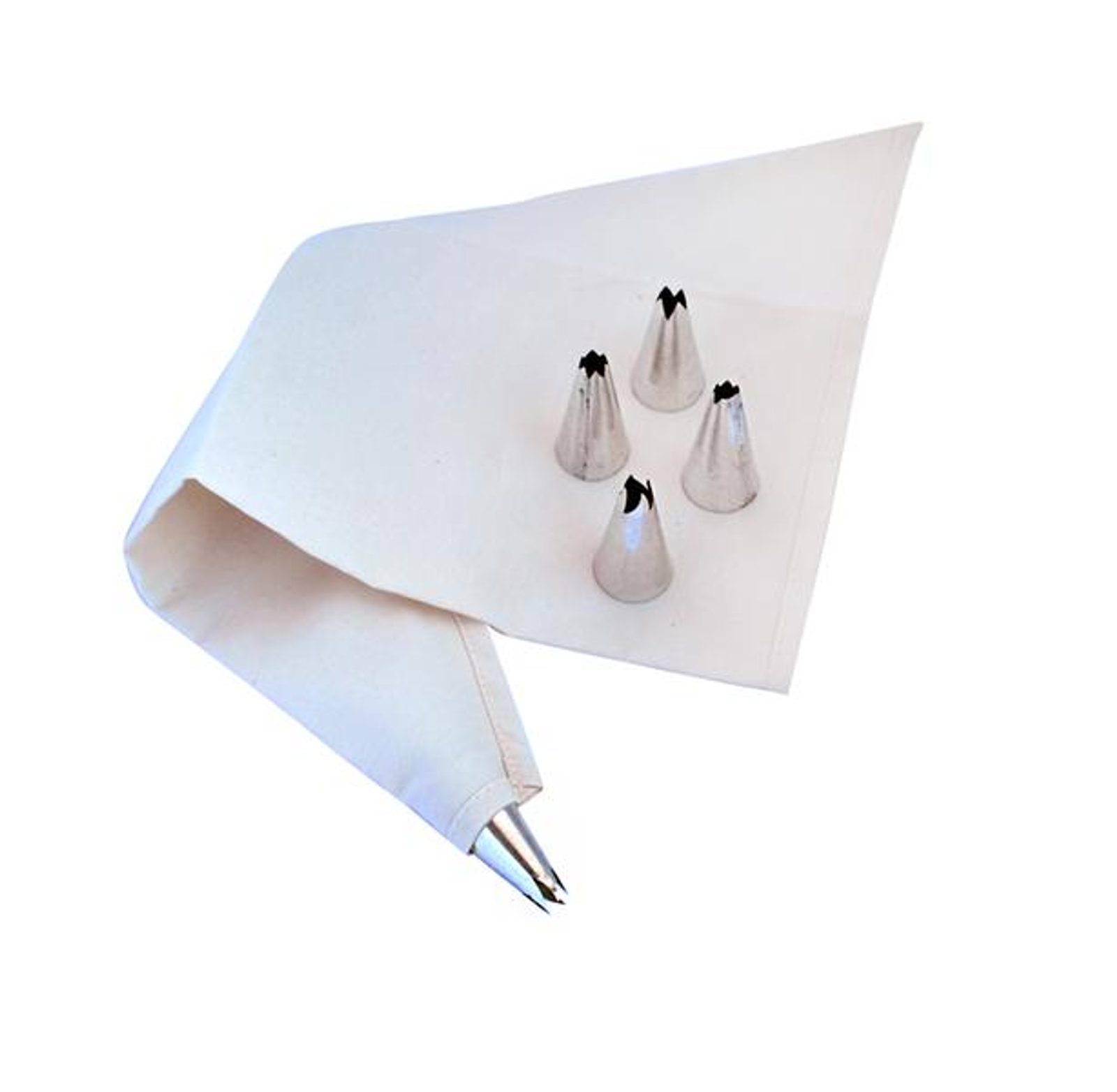 Sada na zdobení dortů obsahuje - zdobící sáček + 5 ks zdobítek. Sáček je bavlněný, zdobítka kovová.