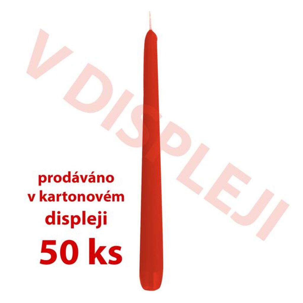 SVÍČKA KÓNICKÁ DISP.50KS,18,5X2,3CM PARAF. SV.ČERV