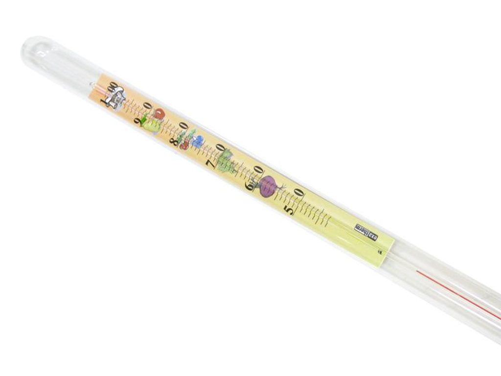 Zavařovací teploměr je hlavní součástí zavařovacích pomůcek, díky němu poznáte na kolik stupňů potraviny zavařujete, díky popisku, který je na něm uveden budete vědět na kolik stupňů se mají jednotlivé potraviny připravovat. Je snadno omyvatelný. Průměr teploměru je 1,8 cm, délka 43 cm. Teploměr zavařovací, průměr 1,8 cm