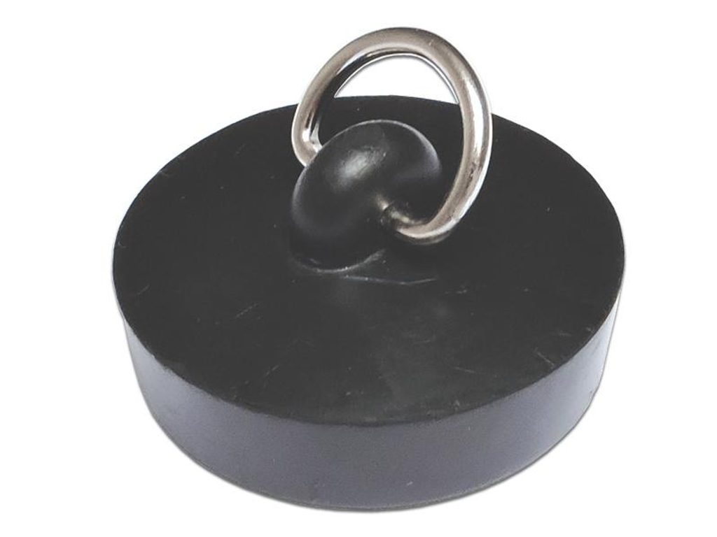 Gumová zátka v černé barvě s kovovým očkem. Tento tvar je ideální pro snazší manipulaci při přetlaku vody. Zátka je vhodná především k uzavření odtoku u umyvadel, koupacích van a dřezů. Průměr - 46…