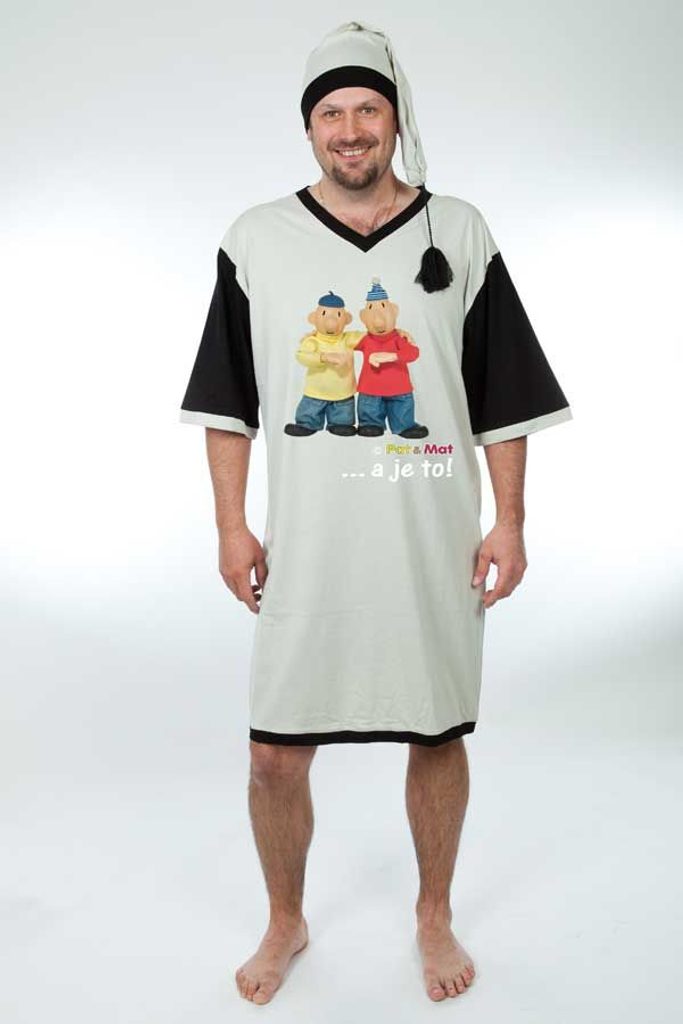 Věnujte svému tatínkovi, kamarádovi, manželovi nebo bratrovi tuto vtipnou noční košili ve stylu Pat a Mat! Noční košile je skvělým dárkem k narozeninám i svátku a rozhodně potěší i pobaví. Nejen ti naši nejmenší mají rádi pohádky, i dospělí muži mohou mít rádi pohádky.