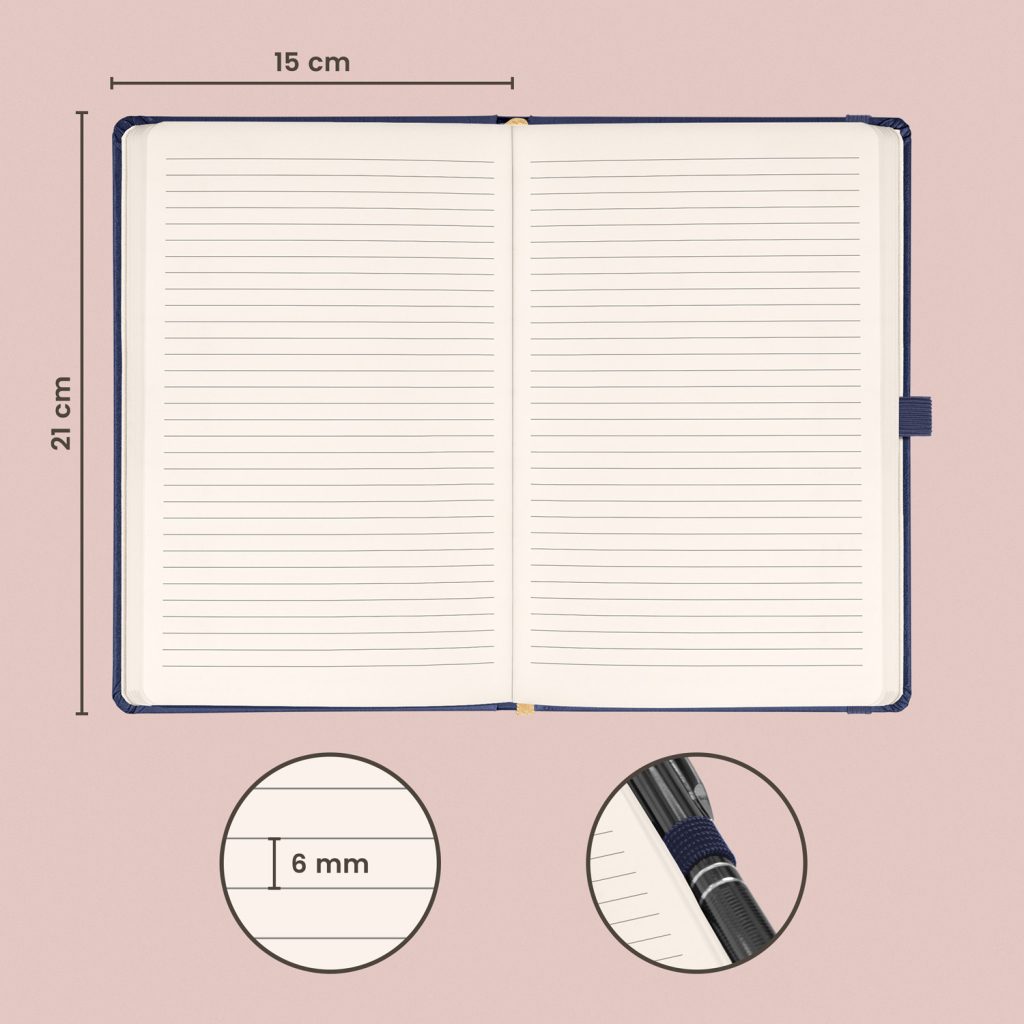 • Vazba: tuhá knižní s gumičkou na uzavření a poutkem na tužku