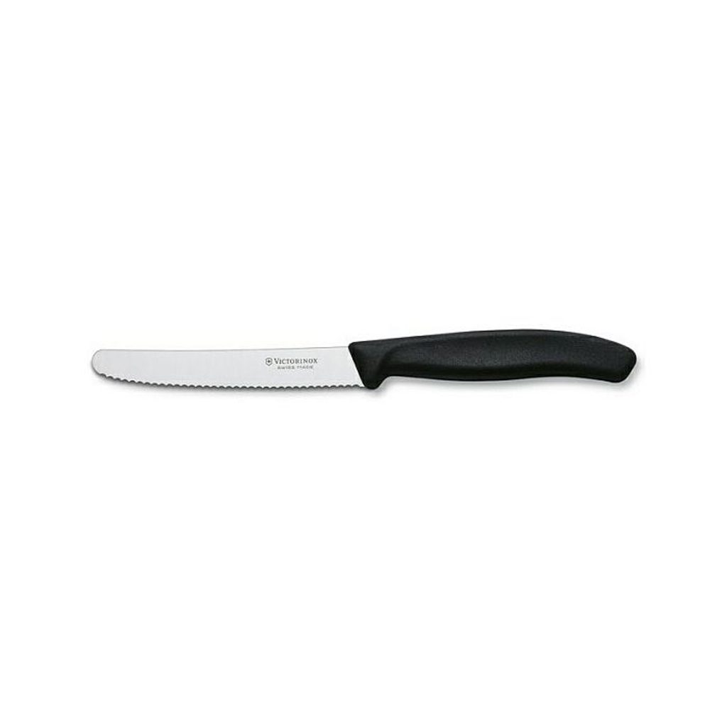 Při použití v myčce se ujistěte, že se nůž nedotýká jiných kovových předmětů v košíku na příbory. Z dlouhodobého hlediska se mohou používáním v myčce objevit změny intenzity barvy rukojeti a reznutí čepele. nůž 11cm na rajčata ČERNÝ, VICTORINOX