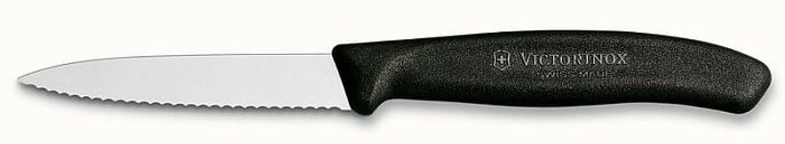 Při použití v myčce se ujistěte, že se nůž nedotýká jiných kovových předmětů v košíku na příbory. Z dlouhodobého hlediska se mohou používáním v myčce objevit změny intenzity barvy rukojeti a reznutí čepele. nůž 8cm kuch.VLNKA, ČERNÝ, VICTORINOX