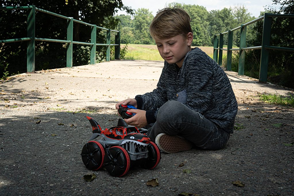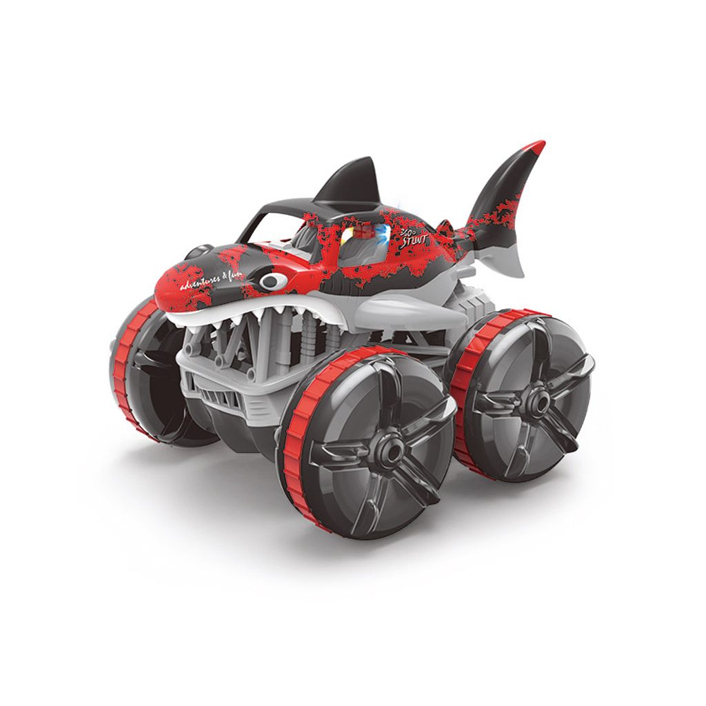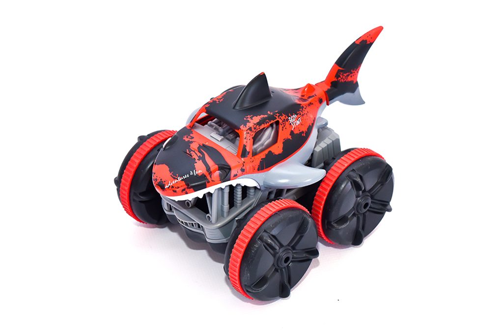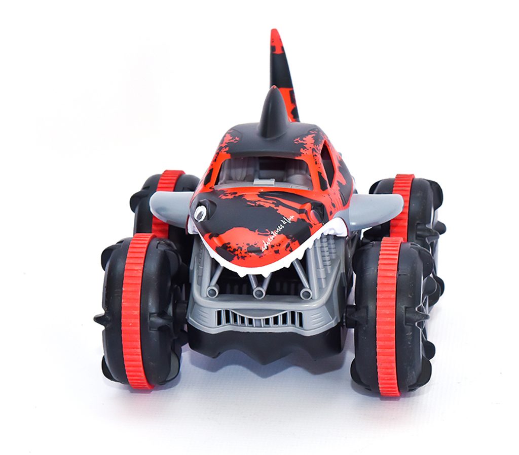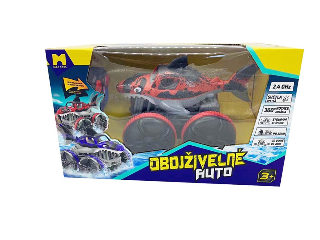 Auto na dálkové ovládání, které jezdí nejen po zemi, ale i po vodě. Ani neupravený terén mu nedělá problémy. Auto jezdí všemi směry a při jízdě mu barveně svítí kabina. Zadní ploutev se při jízdě ve vodě hýbe a vypadá to jako, když plave žralok.