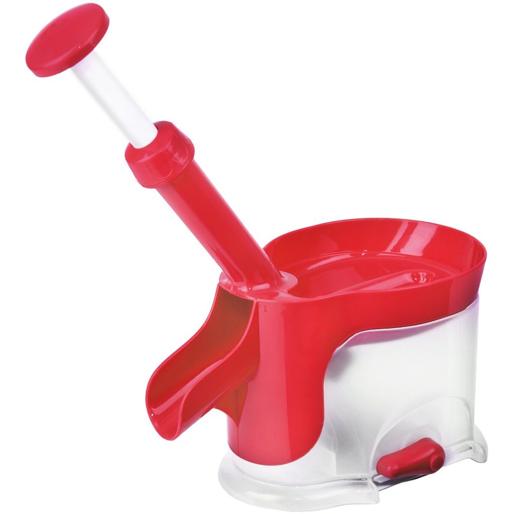 Odpeckovač třešní a višní snadno připraví ovoce k pečení koláčů. Ovoce postupně vsypeme do násypky, pomocí pružinového systému je pecka protlačena do zásobníku. Odpeckované ovoce pak vypadne mimo strojek do připravené nádoby. Materiál: plast. Připevnění ke stolu pomocí přísavky. Náhradní gumička součástí balení. Rozměry: 20x12x27 cm. Náhradní těsnění v naší nabídce 180521.